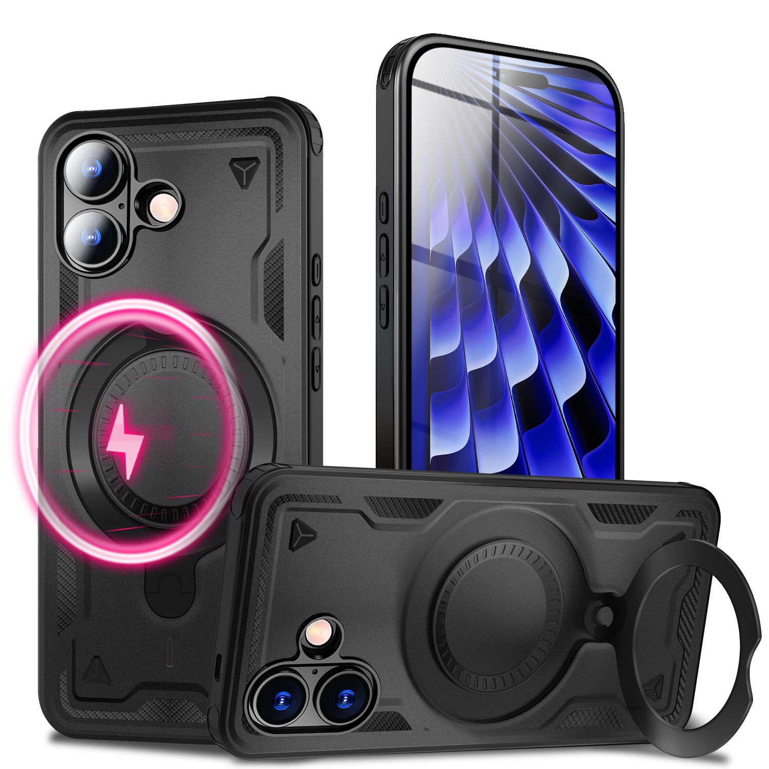 NALIA MagSafe Stormguard hulstur fyrir Apple iPhone 17 (óslítandi, brynjað hulstur) - Höggþolið verndarhulstur fyrir útivist með 360° hringstandi, brynjuðu hulstri og fallvörn - eldfjallasvart