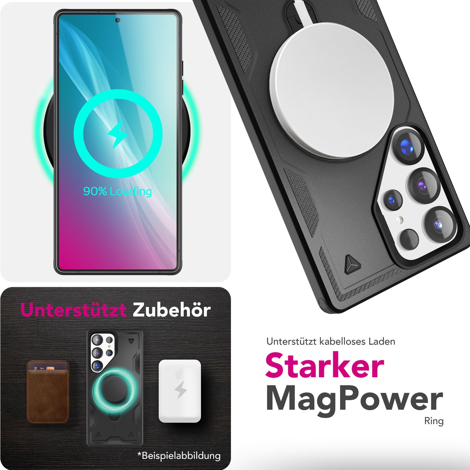 NALIA Stormguard hulstur fyrir Samsung Galaxy S25 Ultra með MagSafe, Armor Military Ring hulstri, höggheldur og fallheldur símahulstur með 360° snúningshring fyrir standvirkni