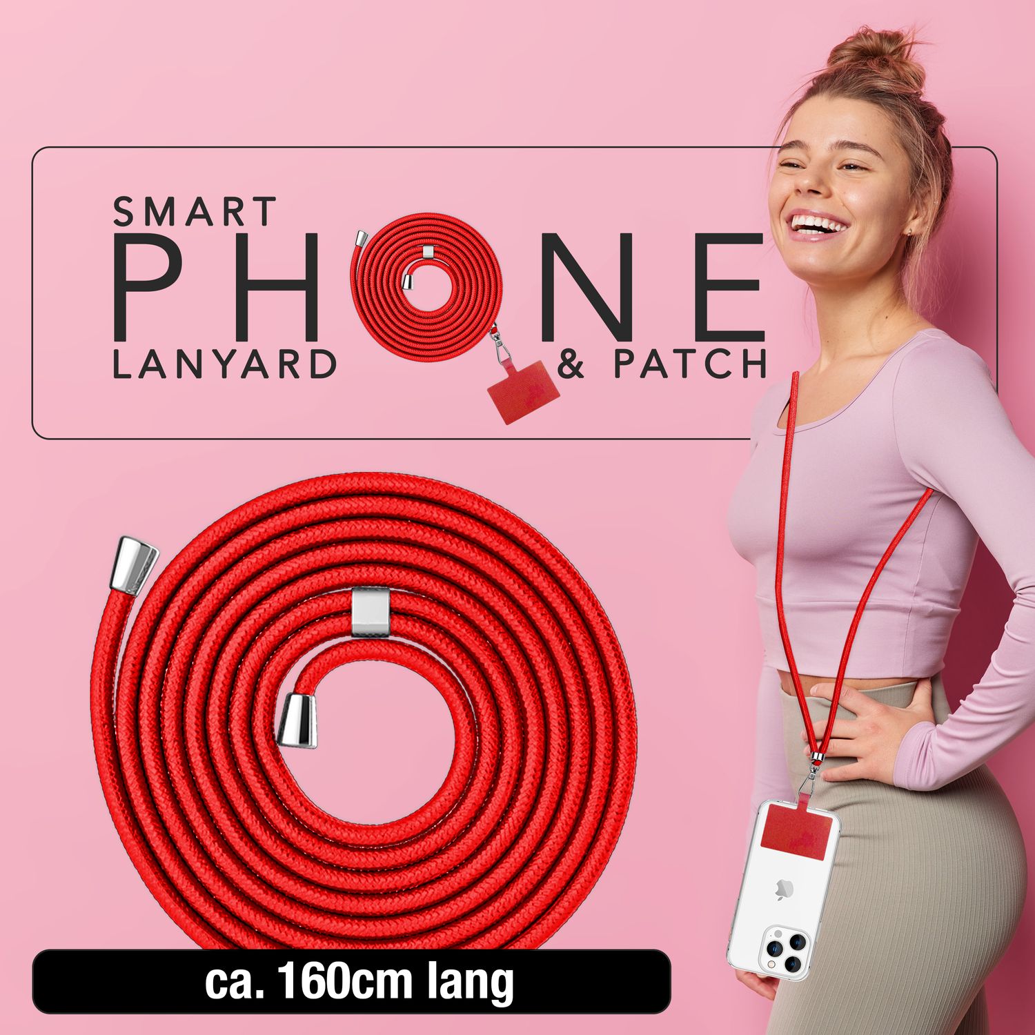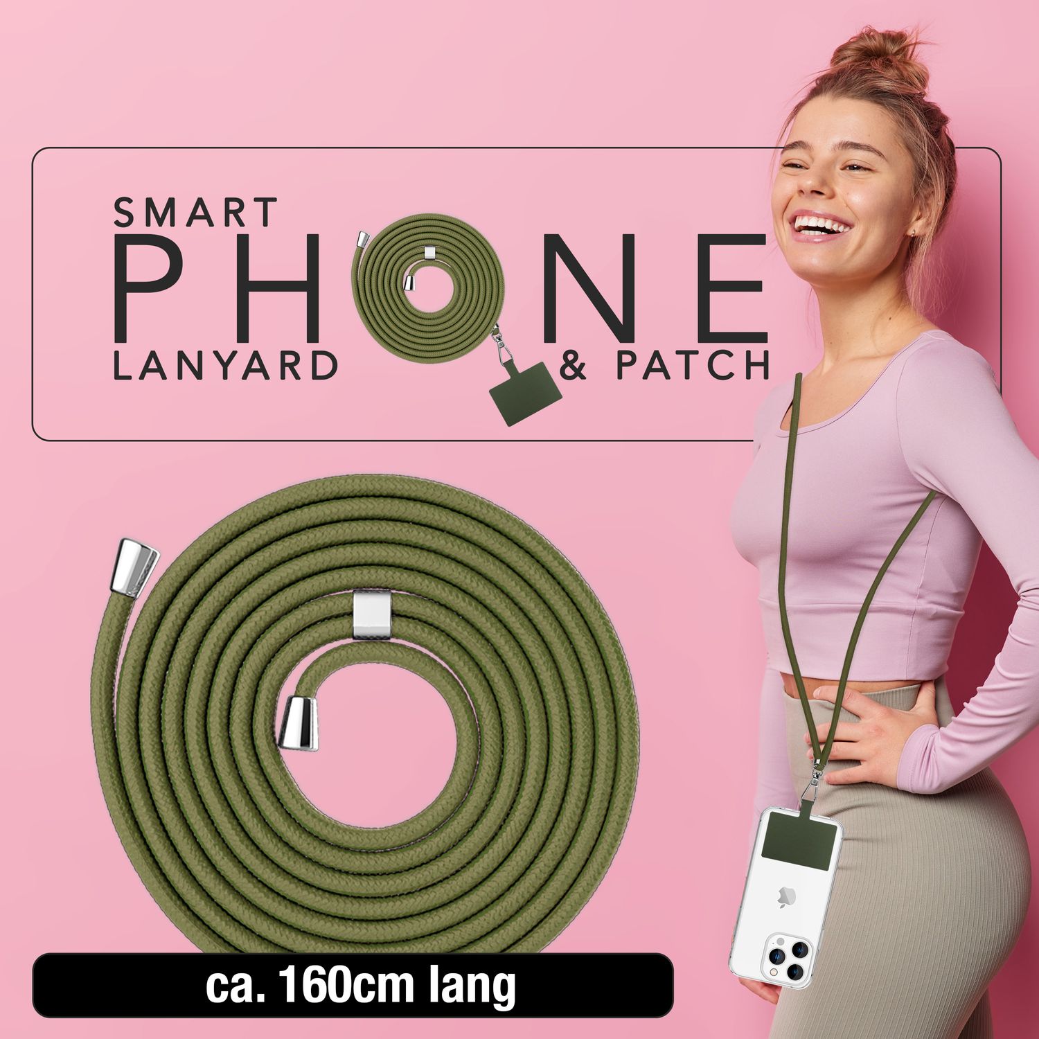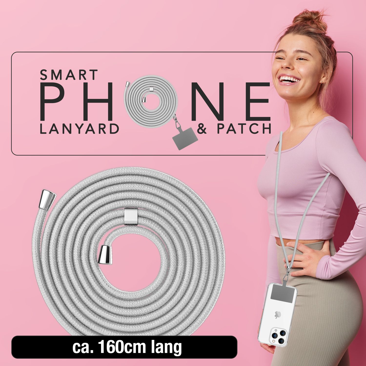 NALIA alhliða keðja með púða, ól fyrir símahulstur, karabínukrókur úr málmi (silfur), lyklakippu, axlabönd 160 cm