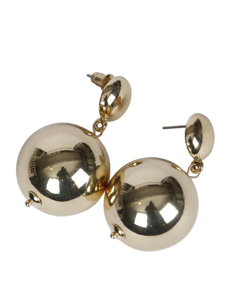 Dekorative Ohrhänger mit einem großen, goldfarbenen Kugelanhänger.