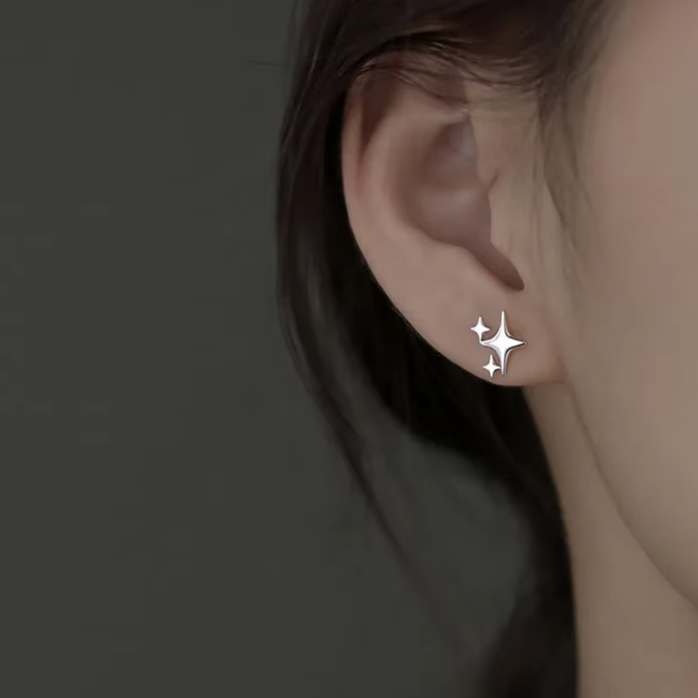 Ohrstecker aus 925er Sterling-Silber, Lonely Triple Star (Set aus 2 verschiedenen Steckern)