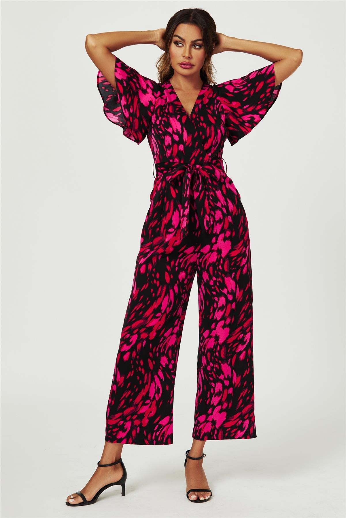 Lyftu upp fataskápnum þínum með bleikum, abstrakt prentuðum, svörtum jakkafötum. Þessi glæsilegi jakkaföt sameinar nútímalegan glæsileika og listræna stíl, með áberandi bleikum abstrakt prenti á móti glæsilegum svörtum bakgrunni. Jakkafötin undirstrika mittið og skapa flöktandi snið, á meðan þægilegt efni tryggir auðvelda hreyfingu. Þessi jakkaföt eru fullkomin fyrir bæði frjálslegar útivistarferðir og sérstök tilefni, og bjóða upp á fjölhæfan og stílhreinan valkost sem mun setja djörf svip á þig hvert sem þú ferð.