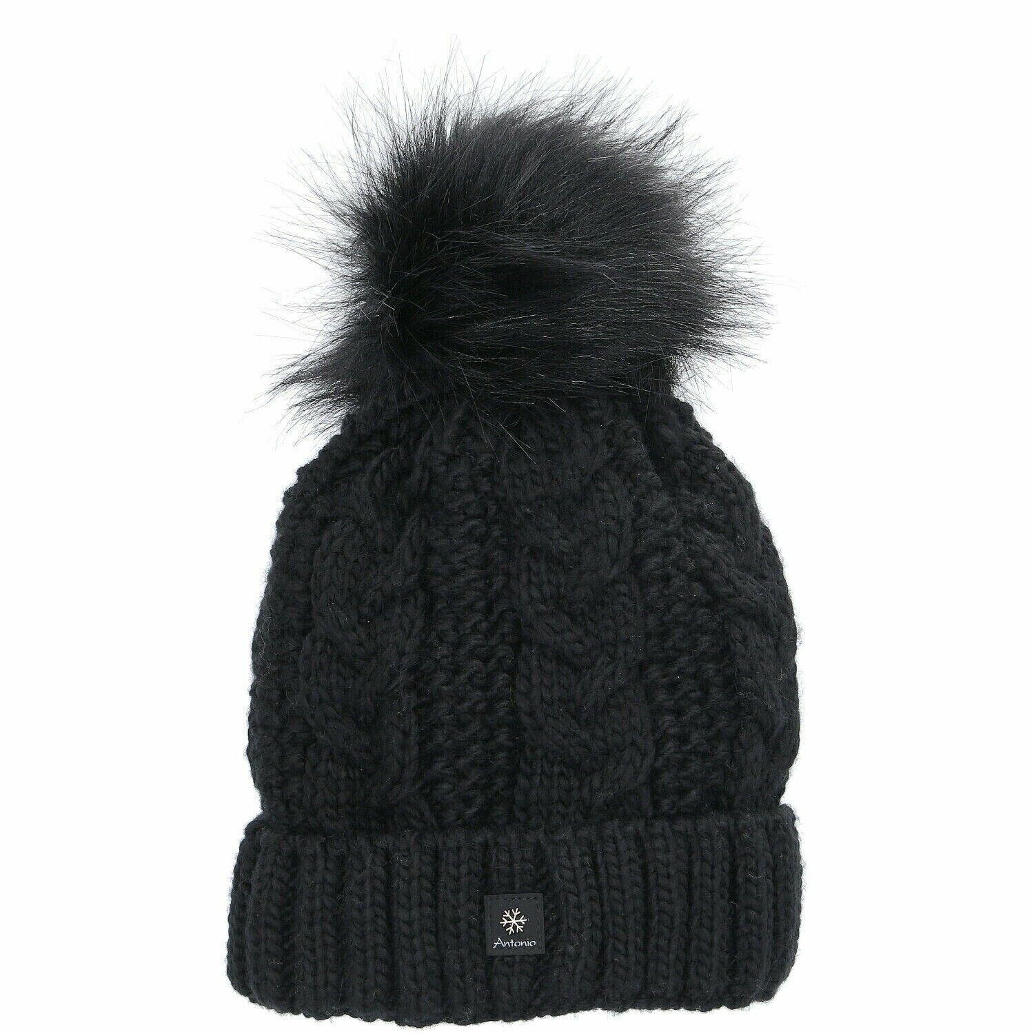Premium Damen Wintermütze » gefütterte Strickmütze schwarz » Bommelmütze » Mütze » Beanie