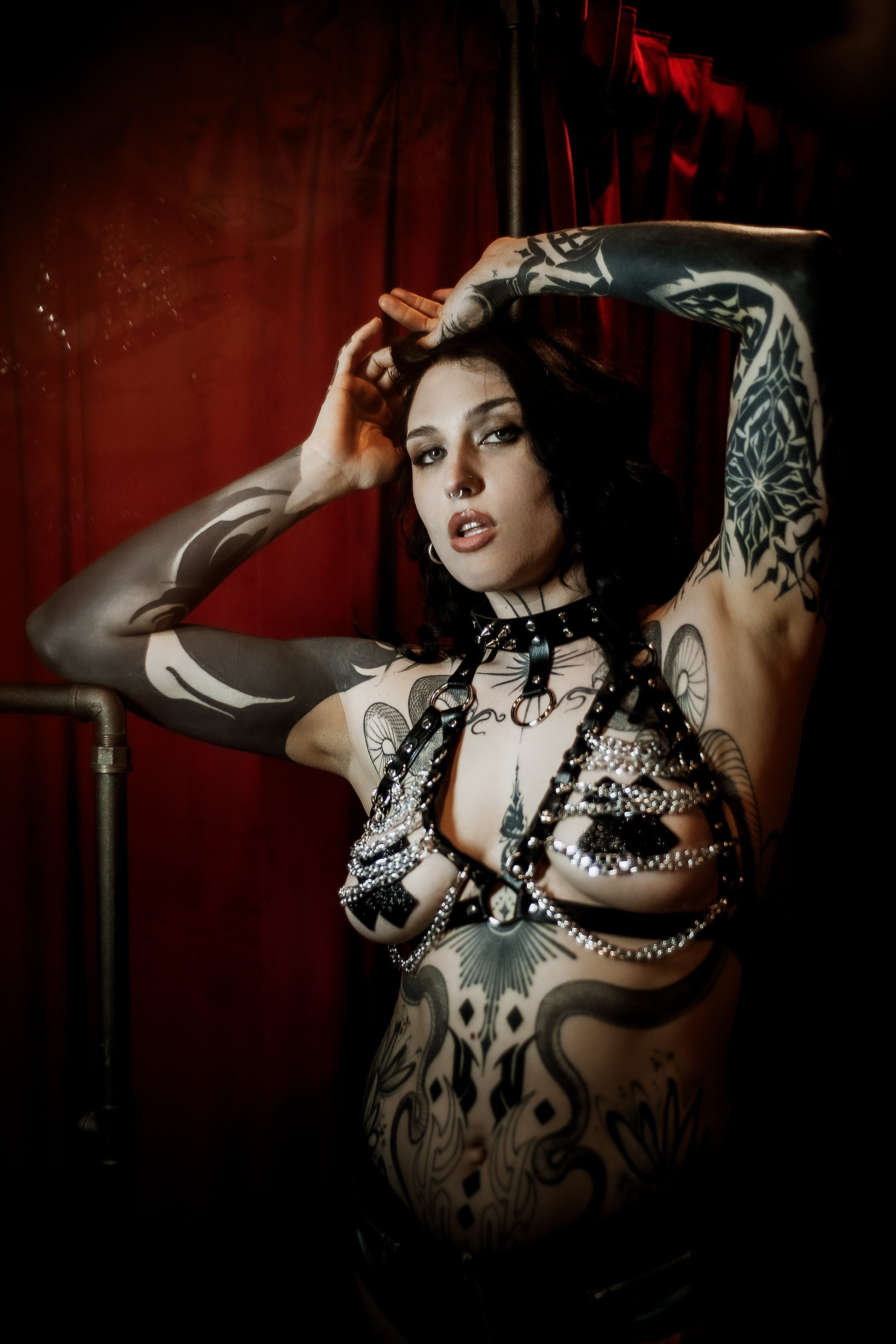 Mit einer Schnallenlänge von 115 cm und einer Breite von 2,5 cm lässt es sich individuell anpassen und bietet optimalen Tragekomfort. Die Kombination aus funktionaler Ausstattung und ästhetischem Design macht dieses Harness zu einem unverzichtbaren Accessoire für mutige Mode-Liebhaber.