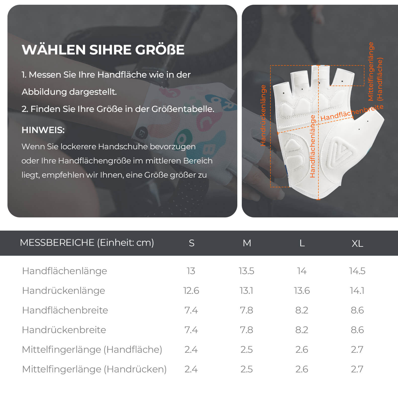 Skýr stærðartafla tryggir fullkomna passun með því að mæla lófastærðina. Ráð: Fyrir meðalstórar hendur, veldu eina stærð stærri fyrir lausari passun.