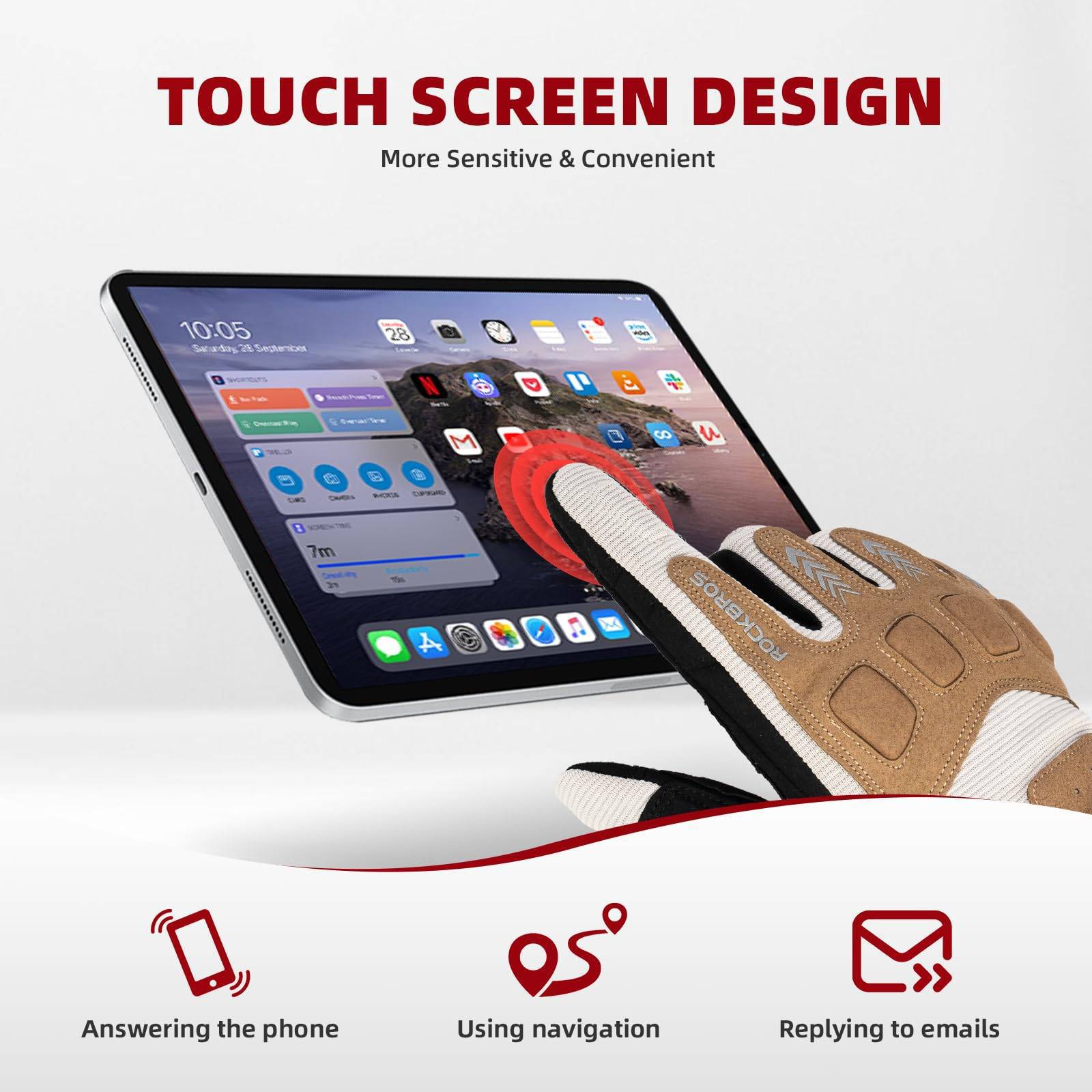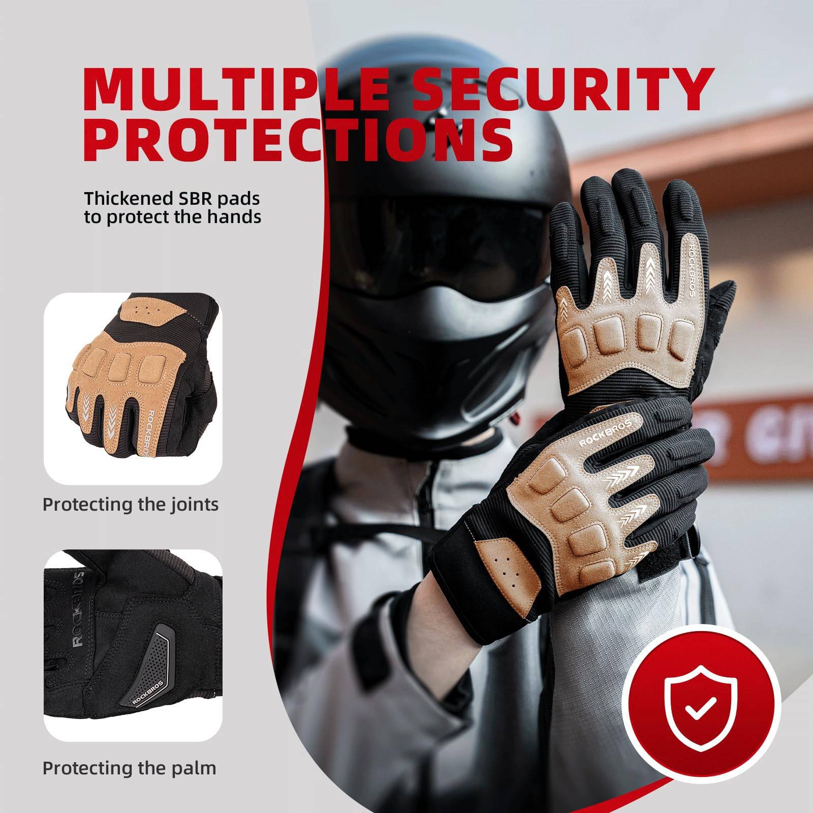 - Hjólreiðahanskarnir okkar eru búnir þykkum SBR-púðum á handarbaki og fingurliðum, sem vernda hendurnar vel og geta dregið úr meiðslum af völdum slysa.