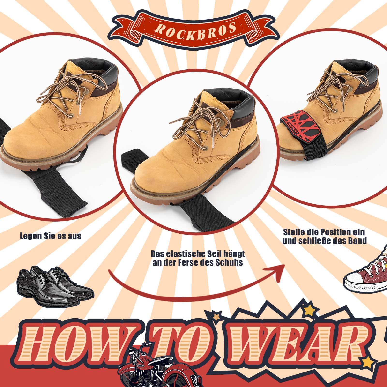 ROCKBROS mótorhjólagírspúðinn býður upp á slitsterka og hálkuvörn fyrir skóna þína á meðan þú ekur. Þökk sé teygju og Velcro-lokun er hægt að stilla hann til að passa við ýmsar gerðir af skóm. Með léttum og smart hönnun er hann bæði hagnýtur og stílhreinn.