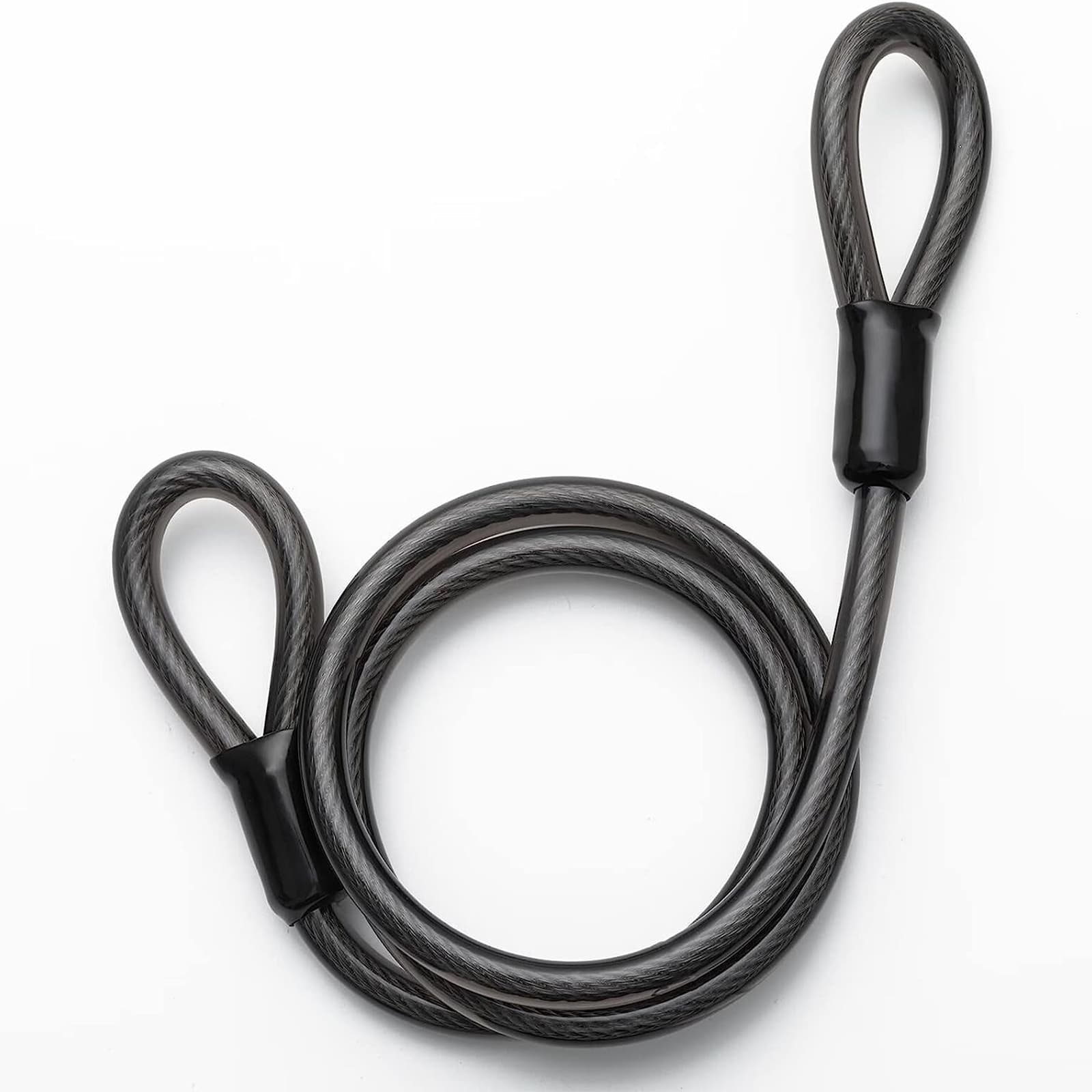 - FJÖLNOTA: Hægt er að nota 1,2m / 2m langa stálvírinn sem framlengingu fyrir hjólalásinn þinn. Þú getur notað öryggisvírinn með hengilásum, mótorhjólalásum eða hjólalásum. Til dæmis geturðu notað hann til að læsa reiðhjólum, rafmagnshjólum, mótorhjólum o.s.frv., en einnig til að vernda farangur, garðhúsgögn, grill og barnavagna.