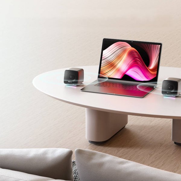 S3 hátalari með stereóhljóði, bassahátalara, 3,5 mm AUX tengi með RGB LED ljósi