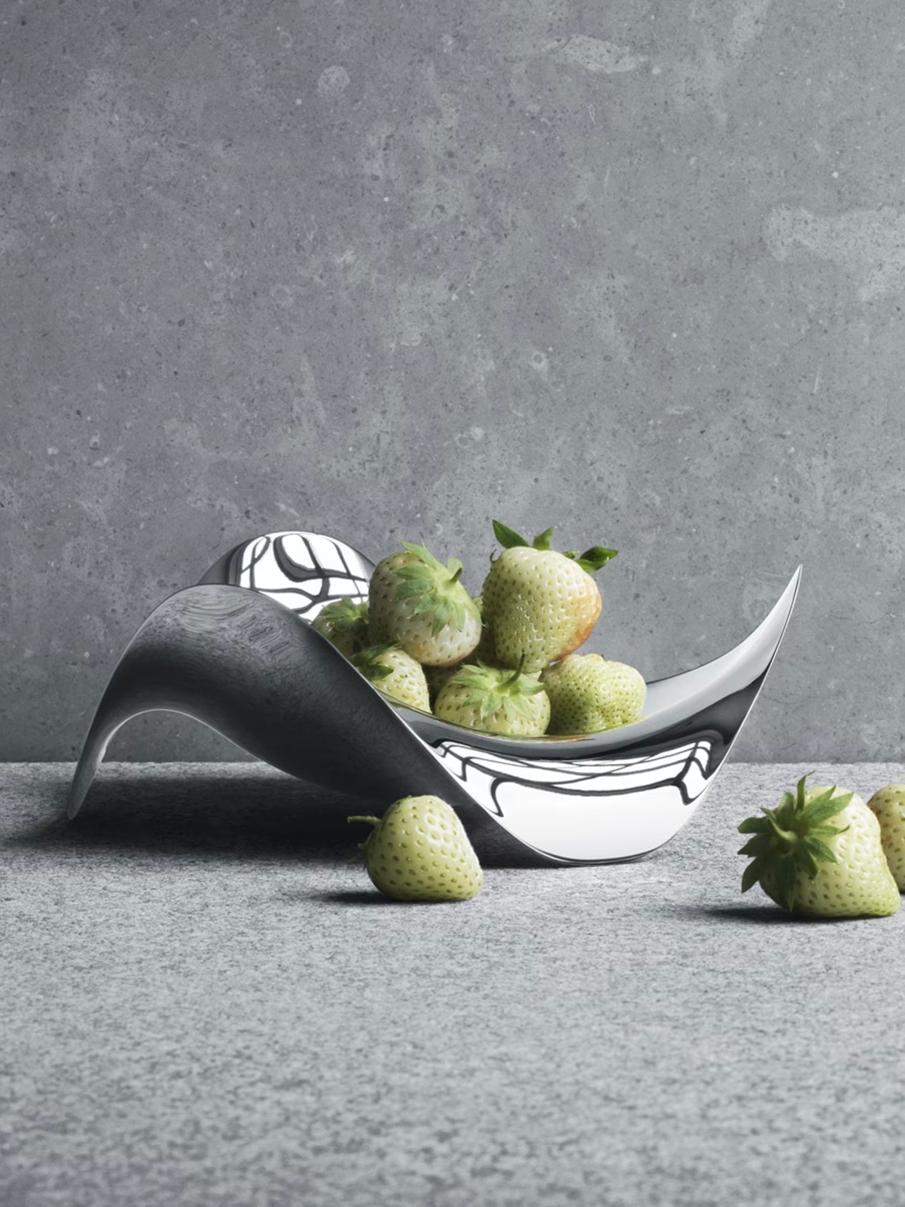 Die Form der COBRA Schale scheint sich, je nach Blickpunkt, stetig zu verändern. Leer ist die Schale ein atemberaubender Blickfang auf jedem Tisch. Genau so eignet sich sich aber auch zum Servieren von kleinen Snacks oder Süßigkeiten.
