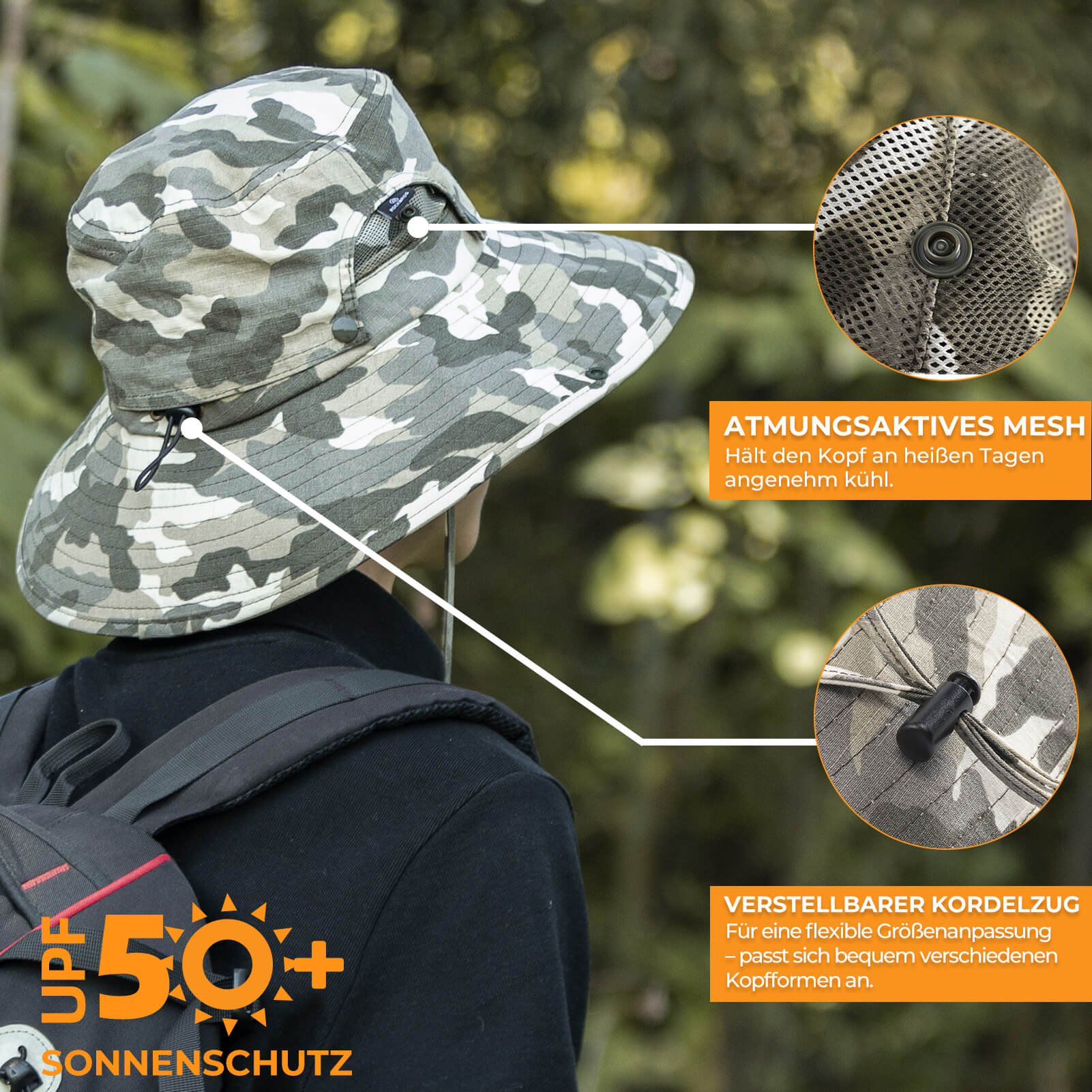 Sólhattur, útivistargönguhattur, veiðihattur, UV vörn
