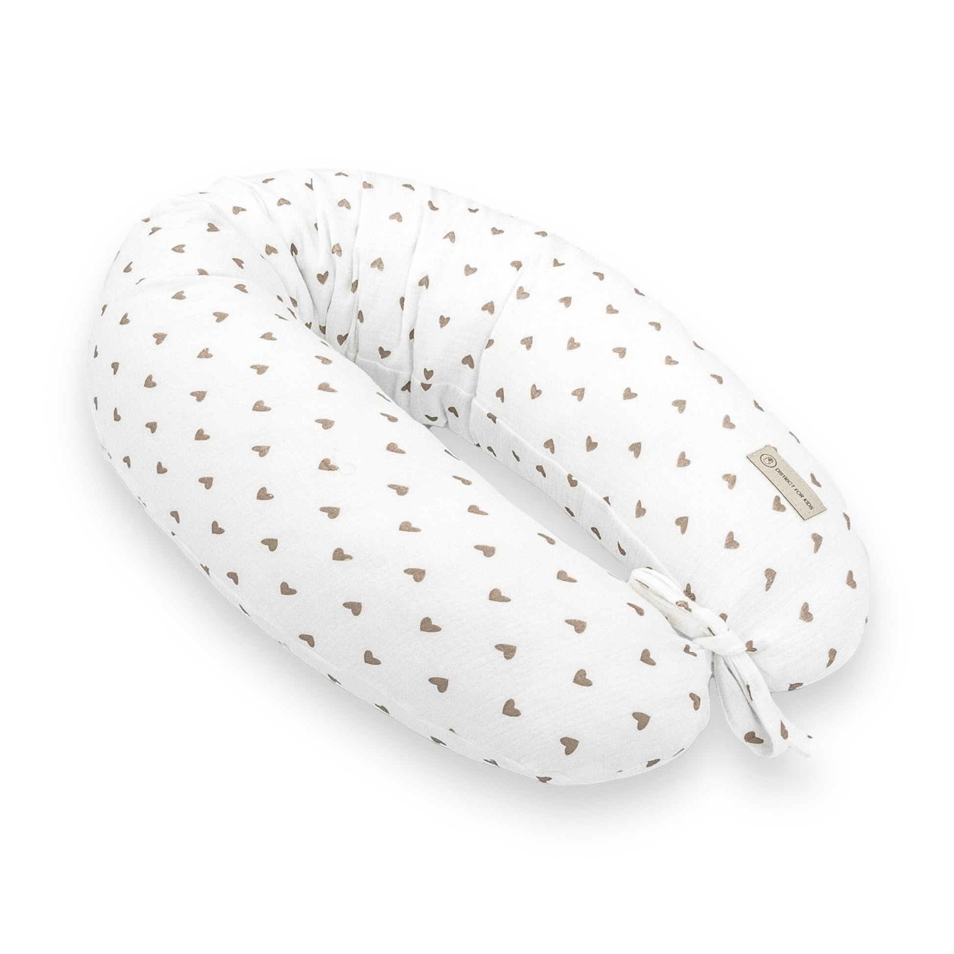 Stillkissen & Schwangerschaftsstillkissen Musselin XXL | Herzen braun