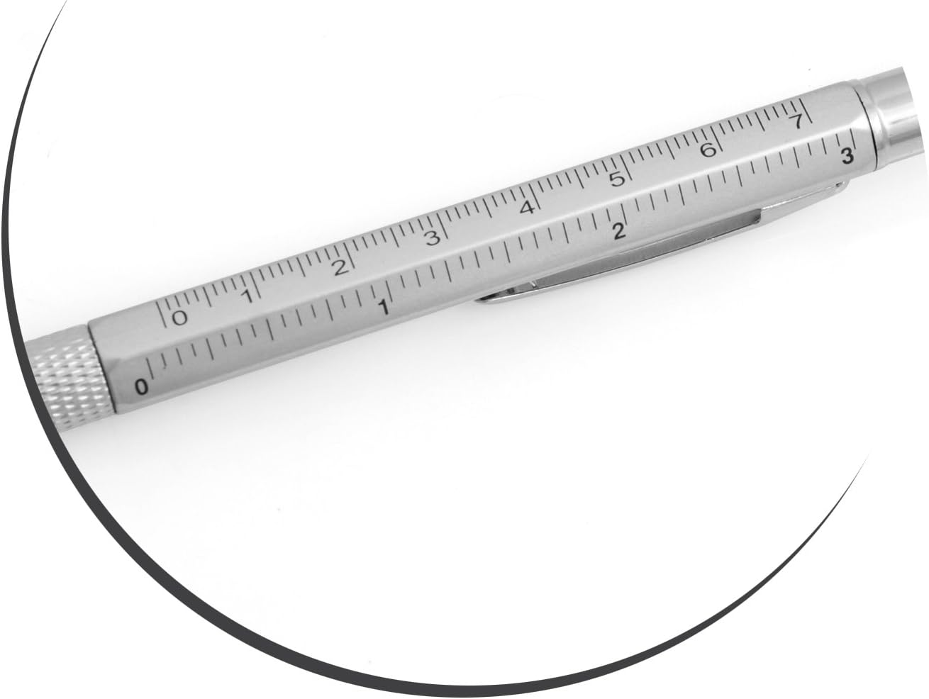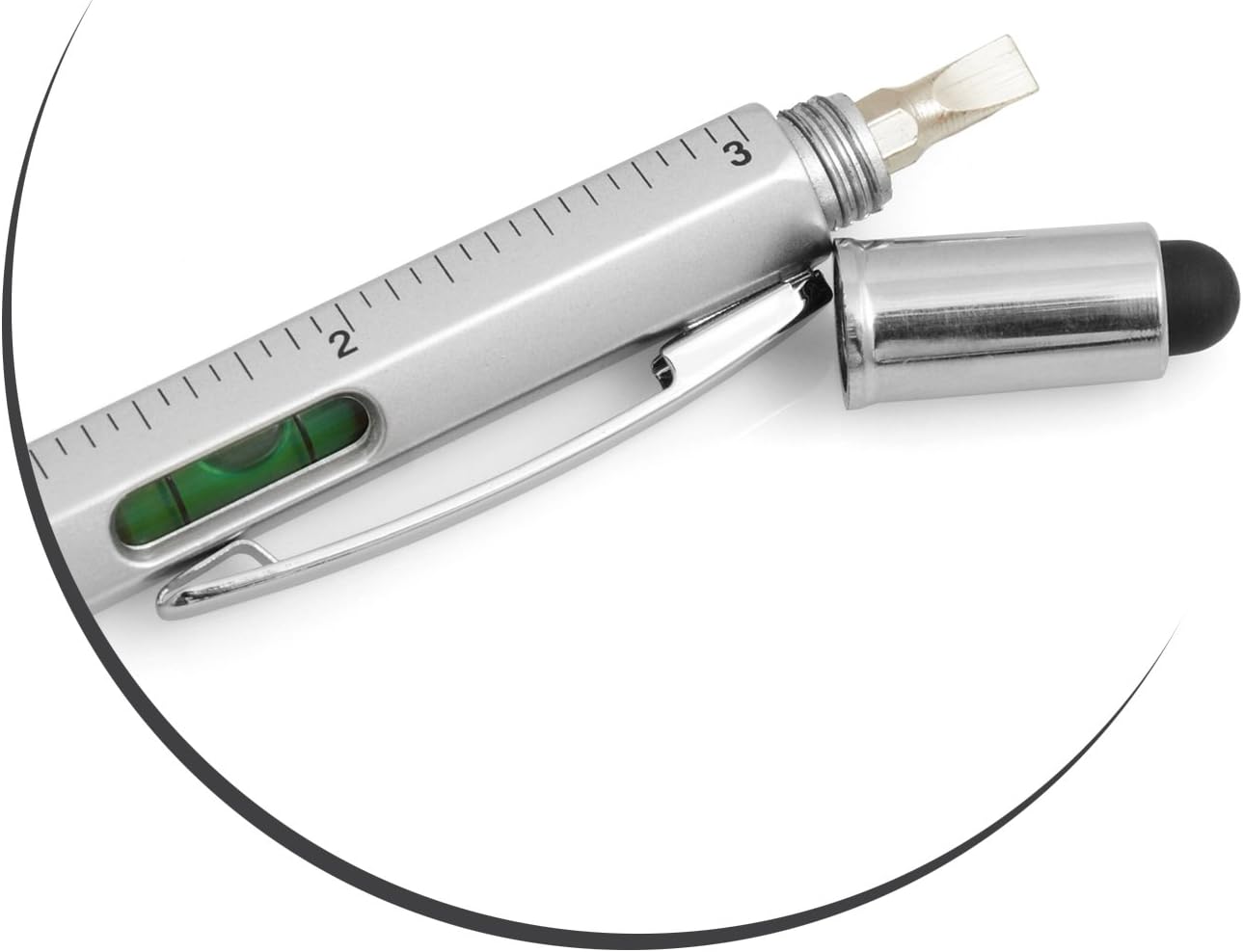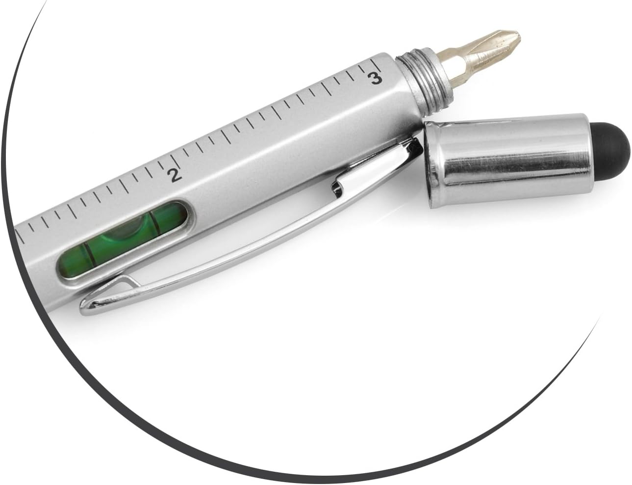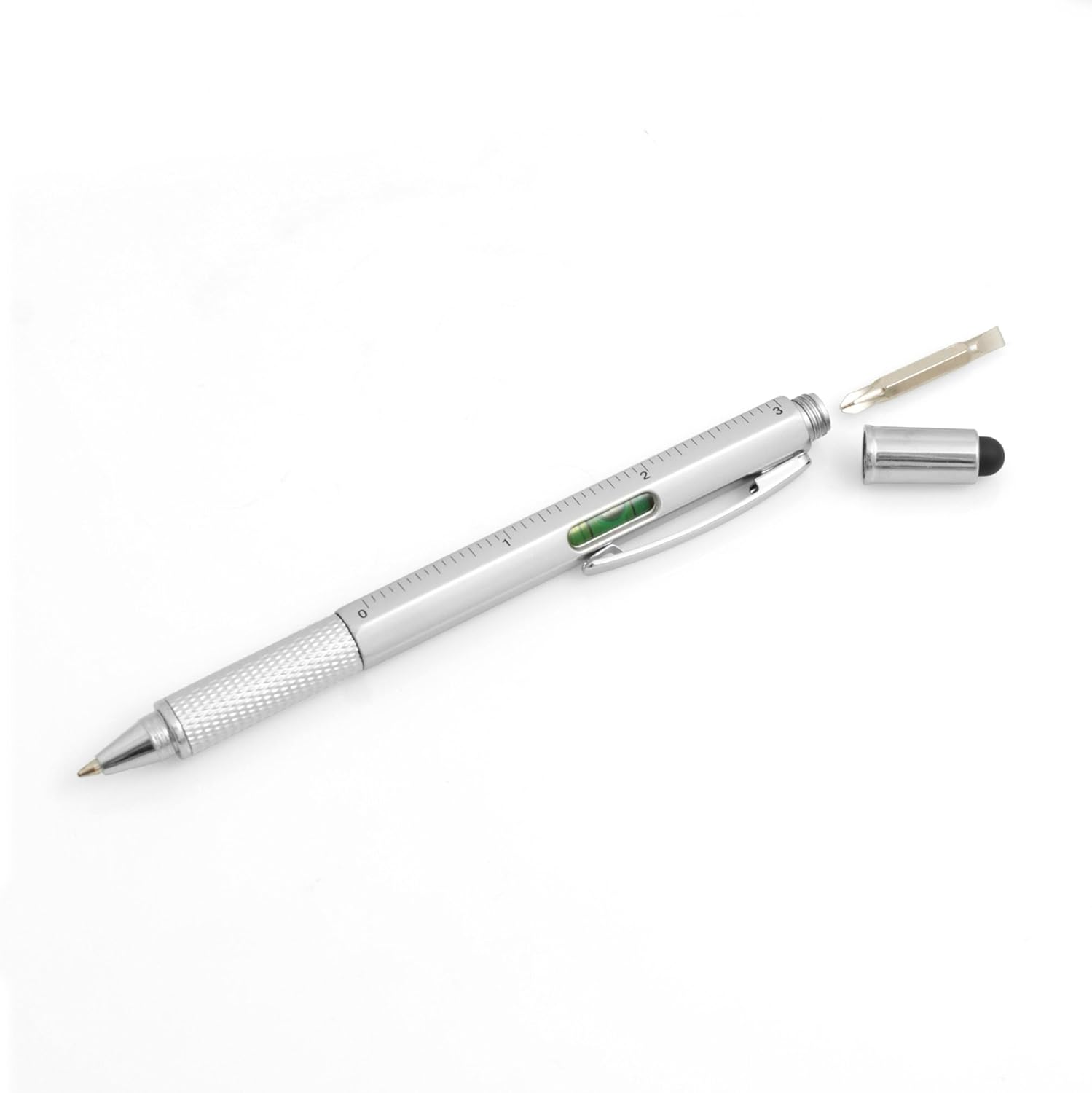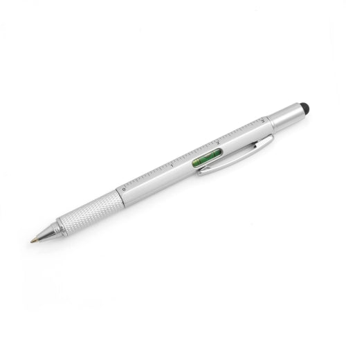 System-S 6 í 1 stíll snertipenni inntakspenni kúlupenni reglustiku skrúfjárn vatnsvog fyrir snjallsíma og spjaldtölvu í silfurlitum