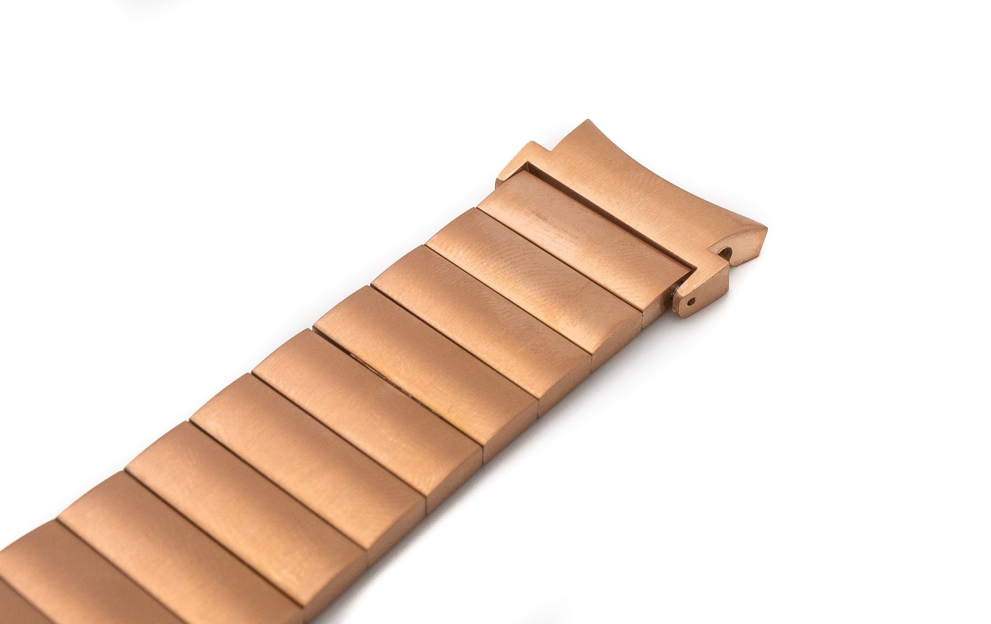 Þessi bleika System-S málmól fyrir Samsung Galaxy Watch 4 snjallúrið er stílhrein og sveigjanleg ól sem gefur snjallúrinu þínu fágað og einstakt útlit. Ólin er úr hágæða málmi og býður upp á örugga og áreiðanlega passun.
