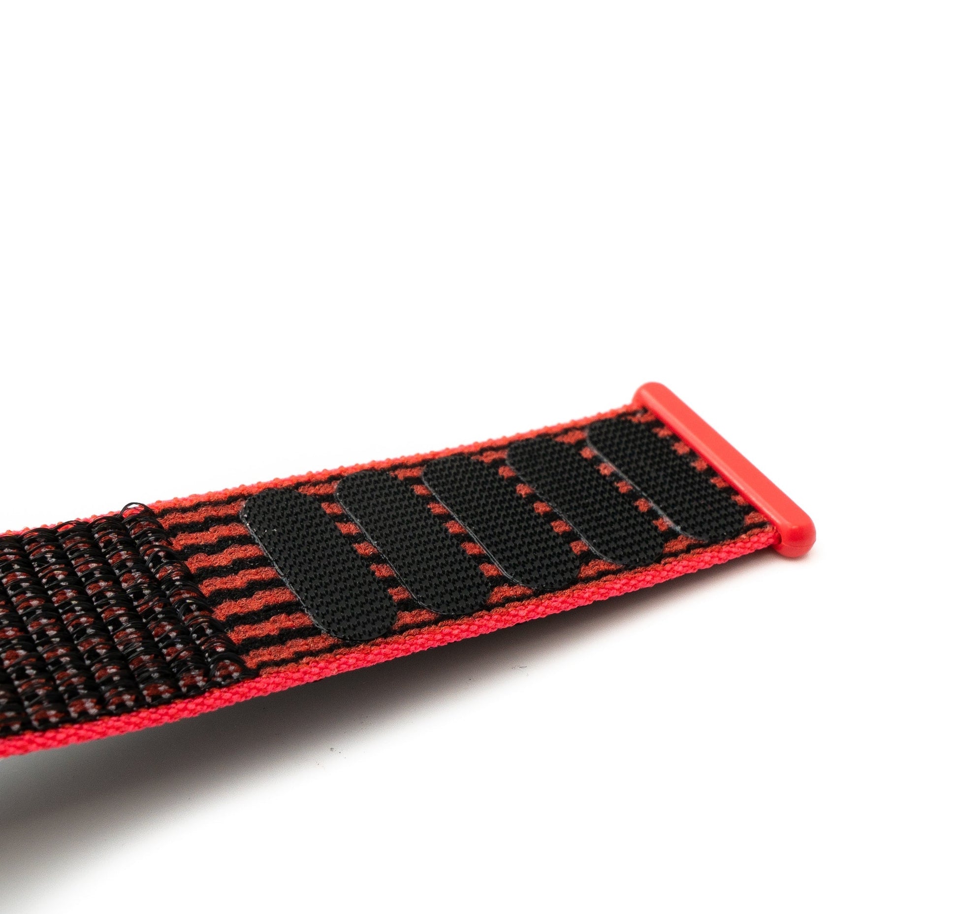SYSTEM-S nylonólin í rauðu og svörtu er tilvalin fyrir alla sem vilja uppfæra Huawei snjallúrið sitt með þægilegri og smart ól sem er bæði endingargóð og stílhrein.