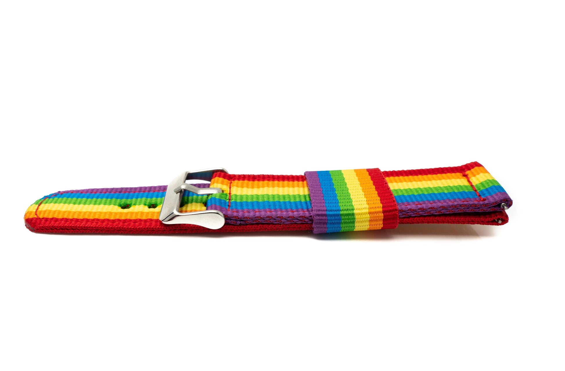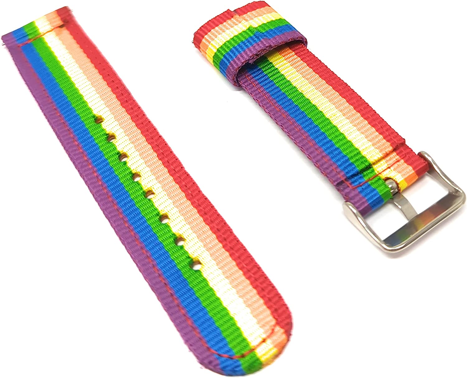 SYSTEM-S 20 mm nylonól fyrir Samsung Galaxy Watch 4 snjallúr í litríkum (regnbogabláum) lit.