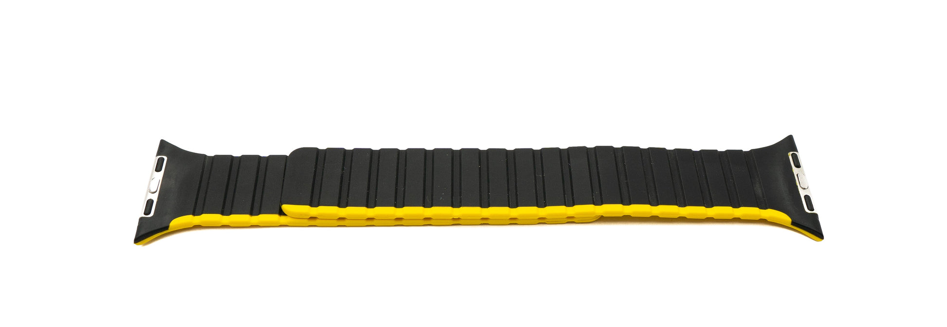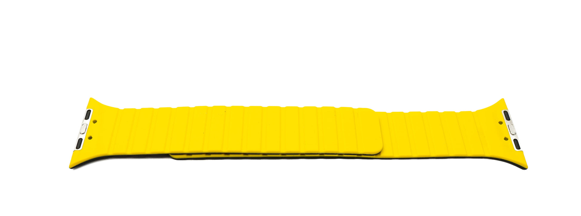 SYSTEM-S armband 42 44 45 49 mm úr sílikoni, sveigjanlegt og segulmagnað fyrir Apple Watch snjallúr, svart og gult