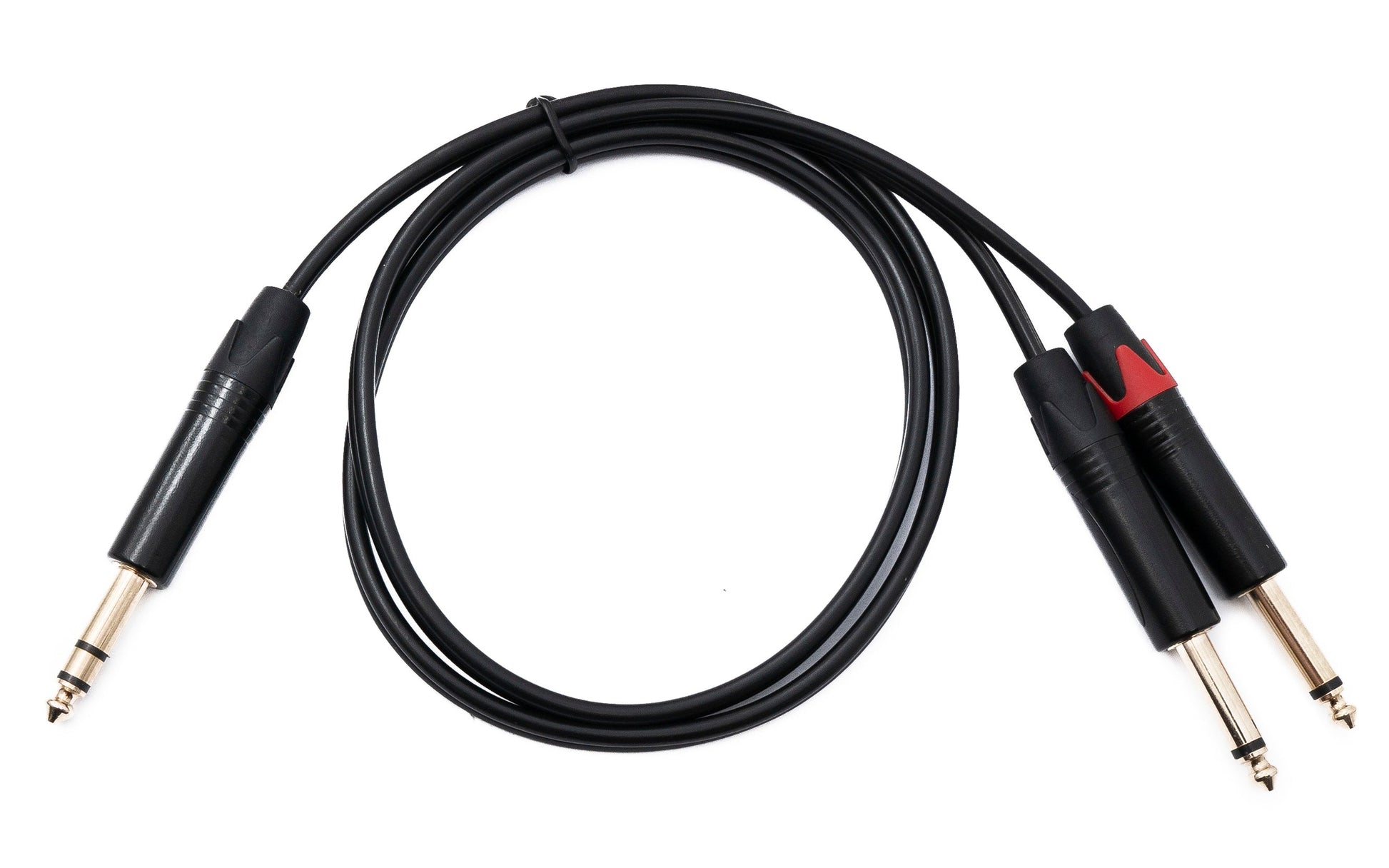 Sendir hljóðmerki á milli eins 6,35 mm tveggja póla TRS tengis (Tip-Sleeve) og tveggja póla 6,35 mm tveggja póla TRS tengis (Tip-Sleeve).