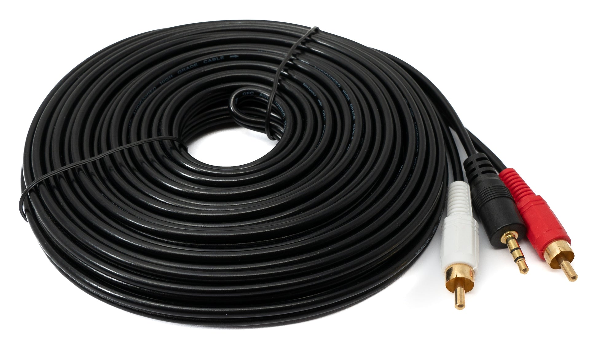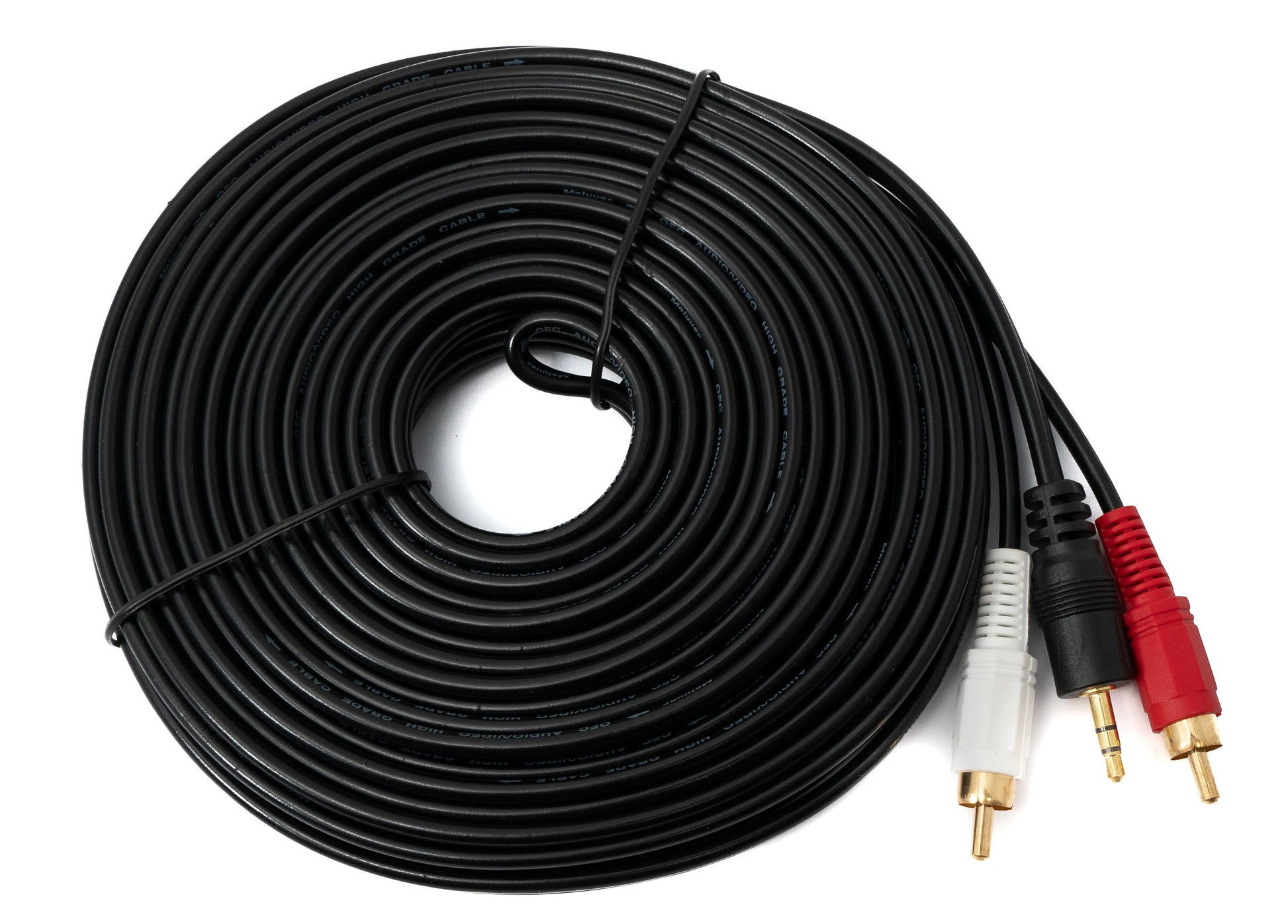 - 1x SYSTEM-S Cinch 2 RCA Kabel 10 m Stecker zu AUX 3,5 mm Klinke Stecker Stereo AV in Schwarz