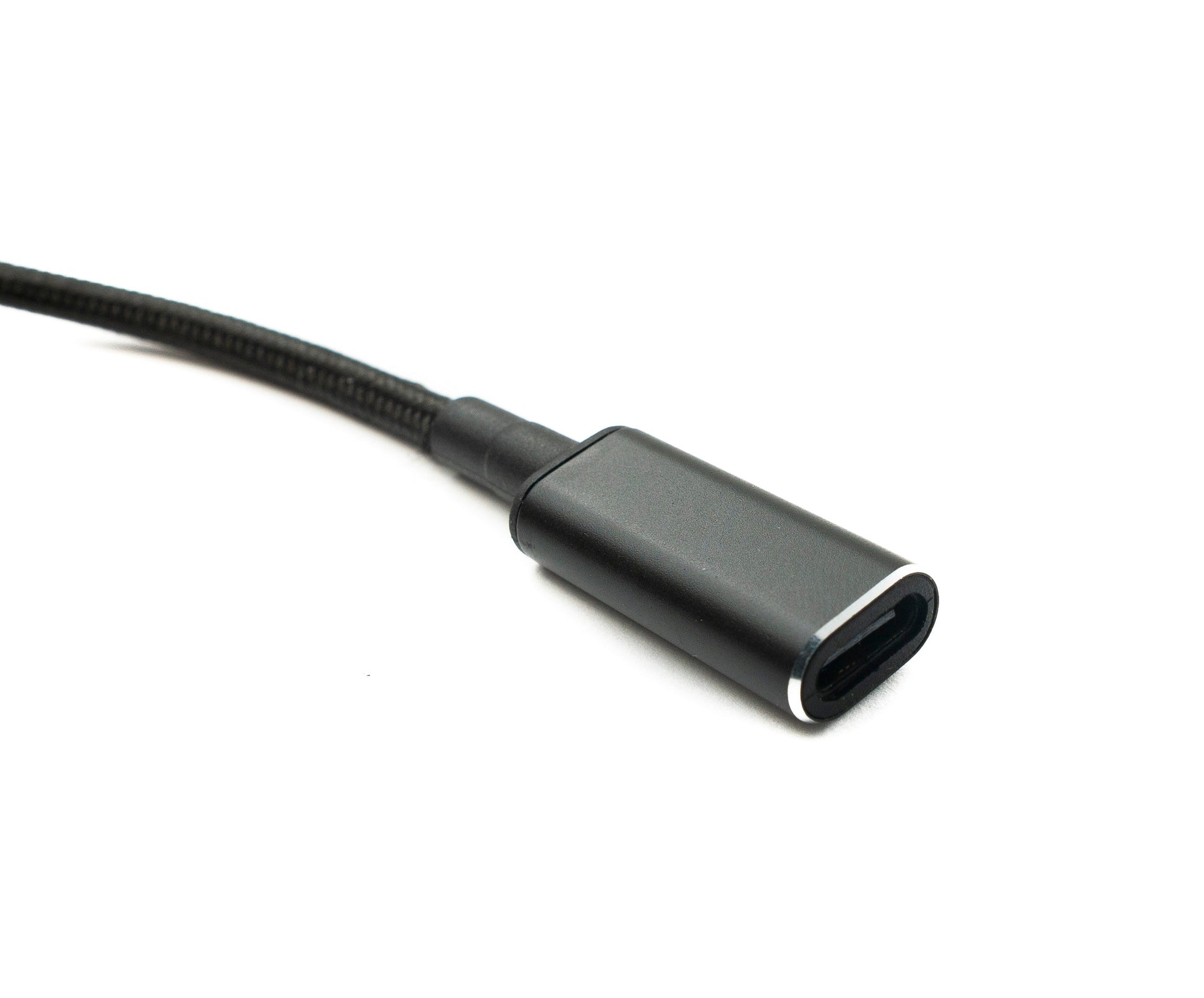 Technische Details: Leistung: 100 W, Spannung: 18,5–20 V; Länge: 8 cm (ohne), 15 cm (mit Anschlüssen); Maße USB-C: 4,1 × 1,2 × 0,6 cm, DC: 3,3 × 3,3 × 0,8 cm; Gewicht: 8 g (Produkt), 2 g (Verpackung); Modellnummer: 90031462
