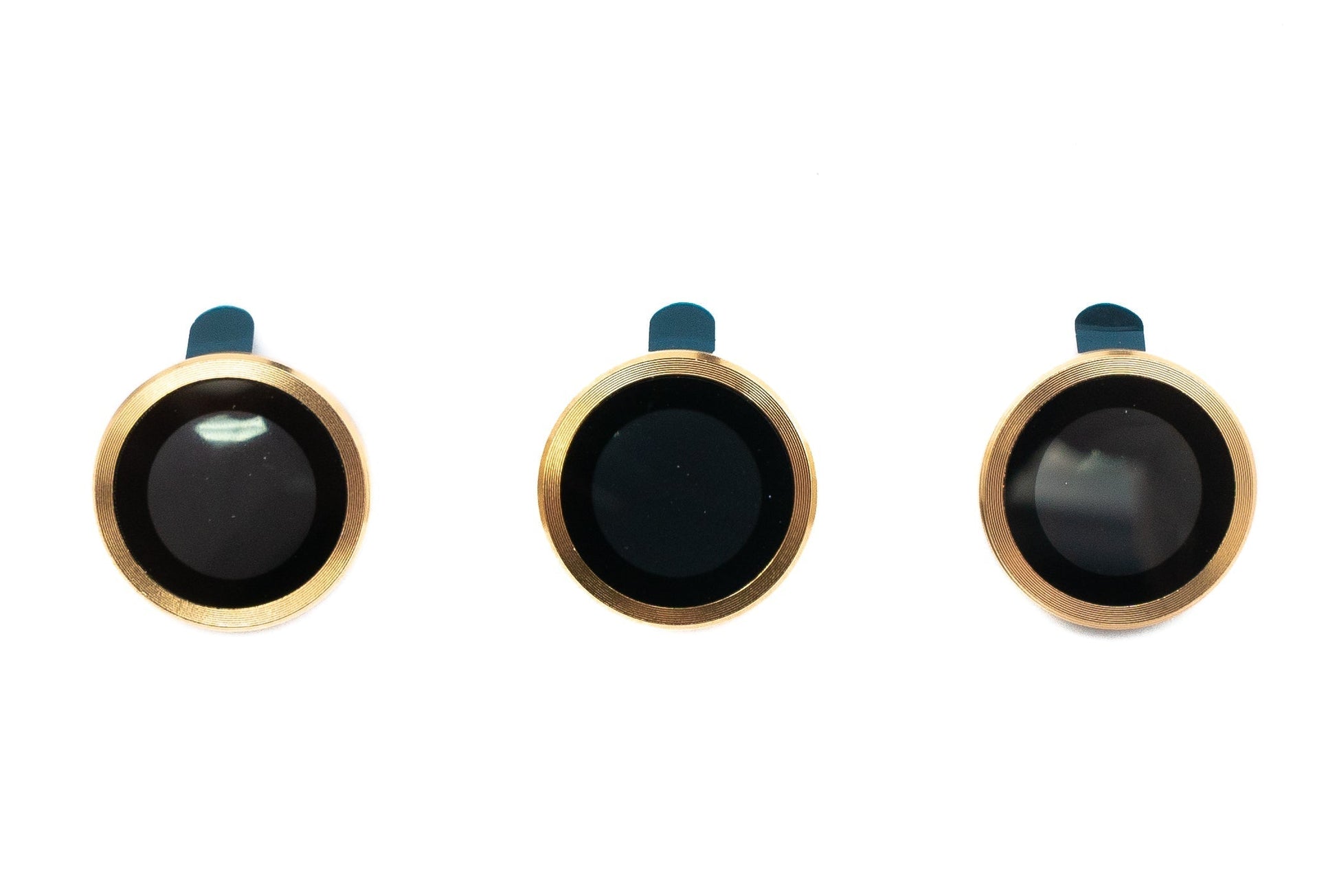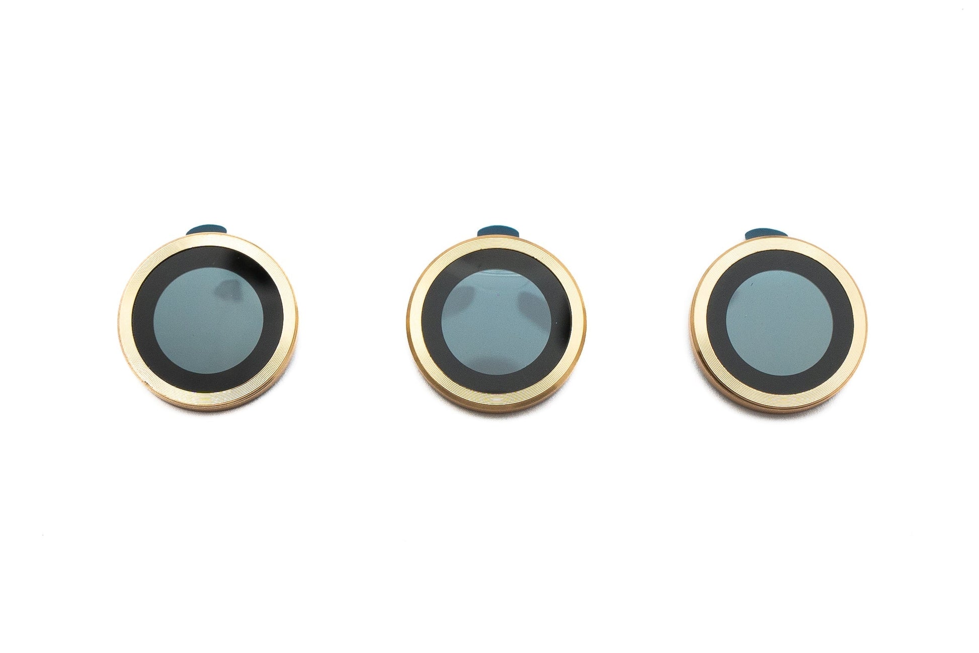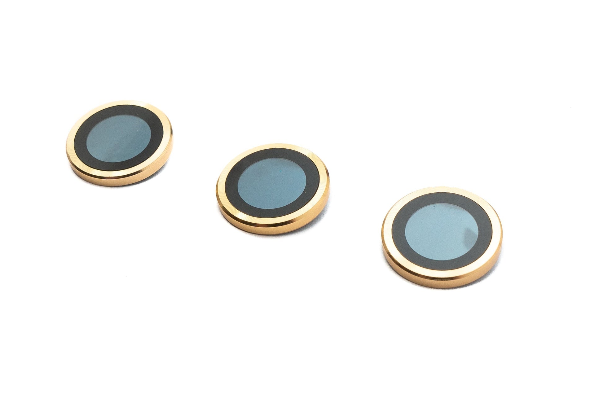 SYSTEM-S Myndavélarhlíf úr gleri og málmi fyrir iPhone 13 Pro + Max, gulur