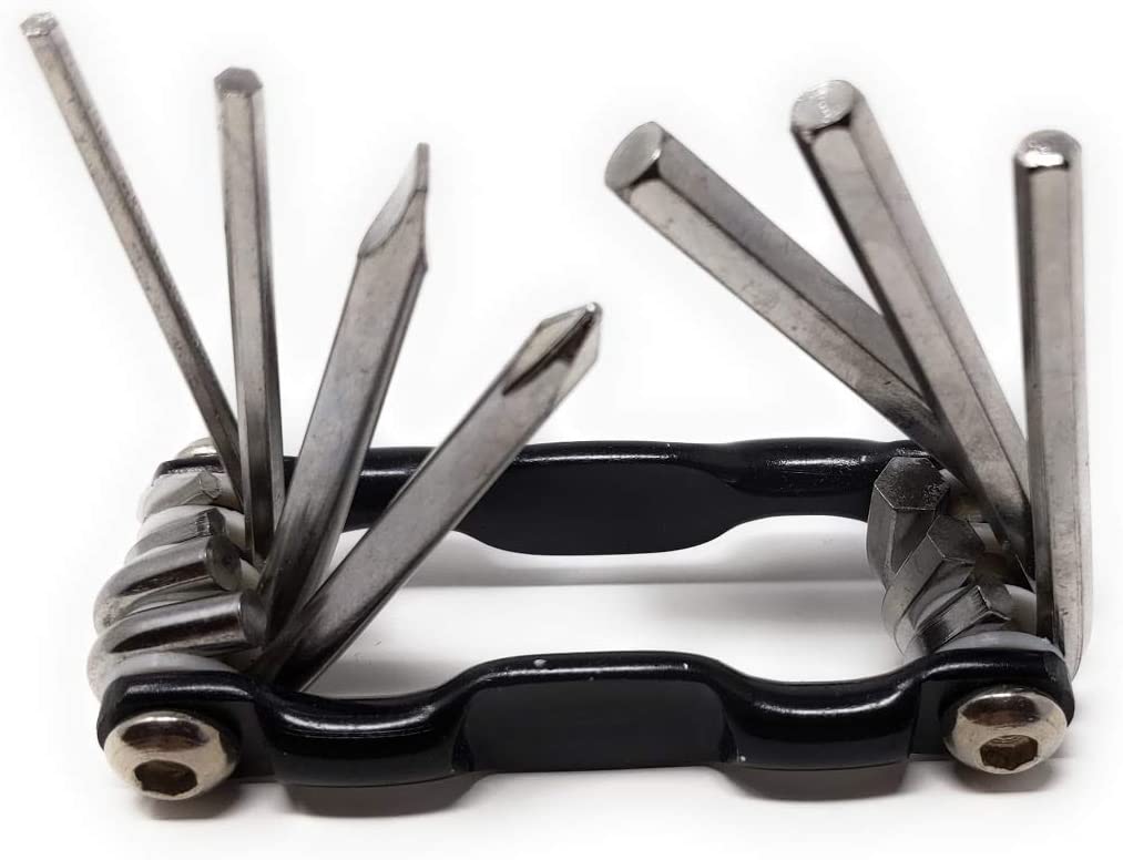 - System-S 7 í 1 samanbrjótanlegt fjölverkfæraviðgerðarsett, sexhyrningslykill (2,5, 3, 4, 5 og 6 mm), Phillips og rifa skrúfjárn, skrúfjárn