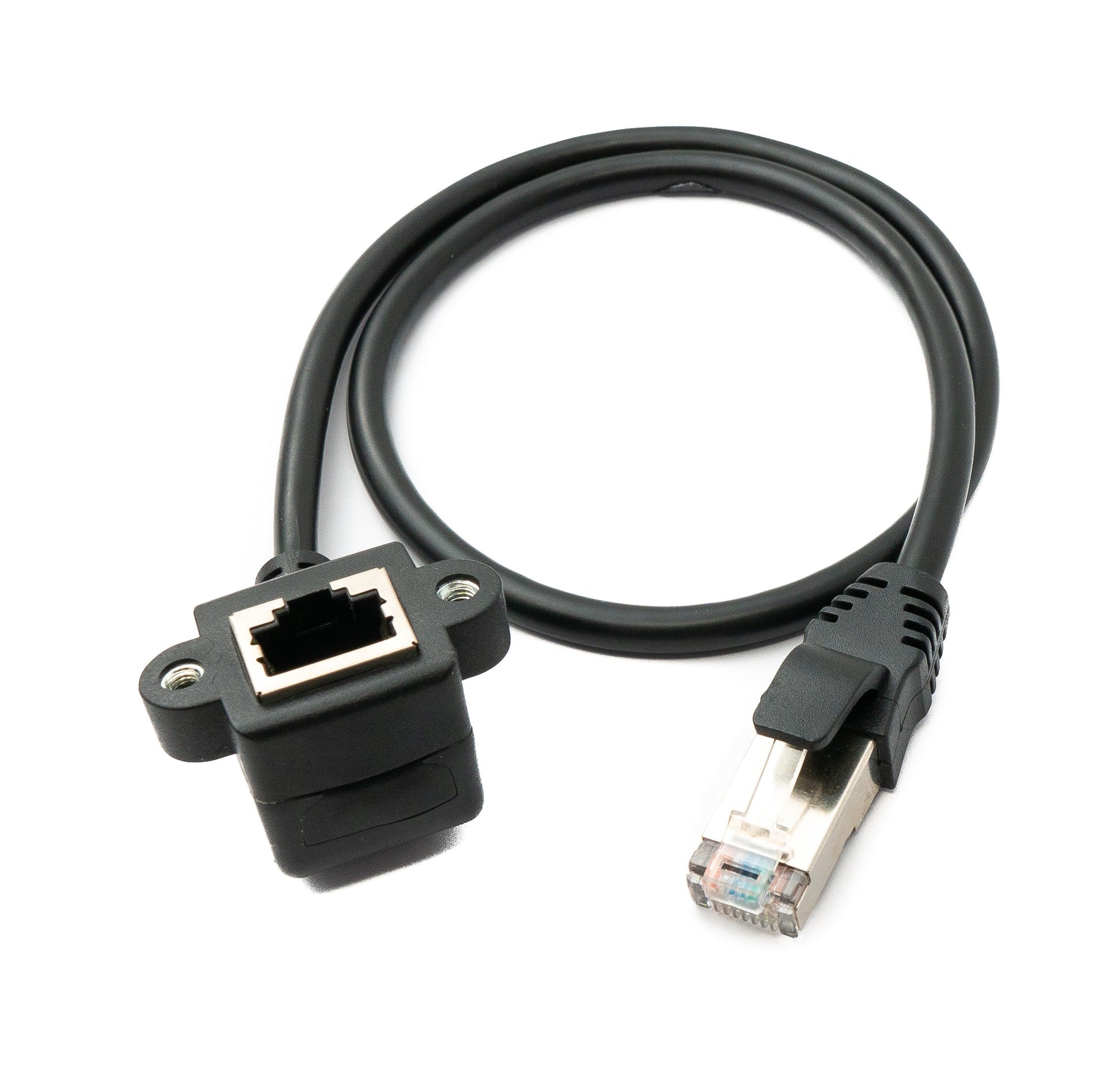 SYSTEM-S LAN snúra 60 cm 8P8C tengi í RJ45 tengi með skrúfuhorni, svört