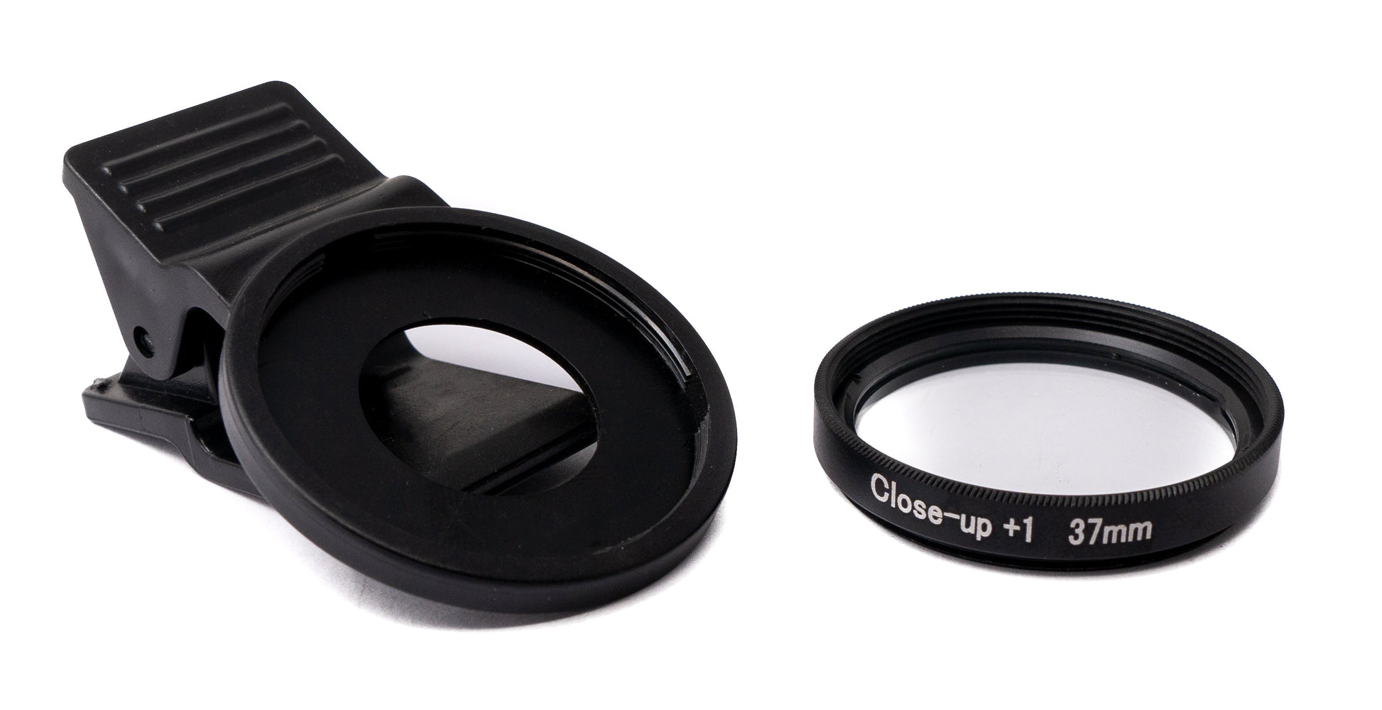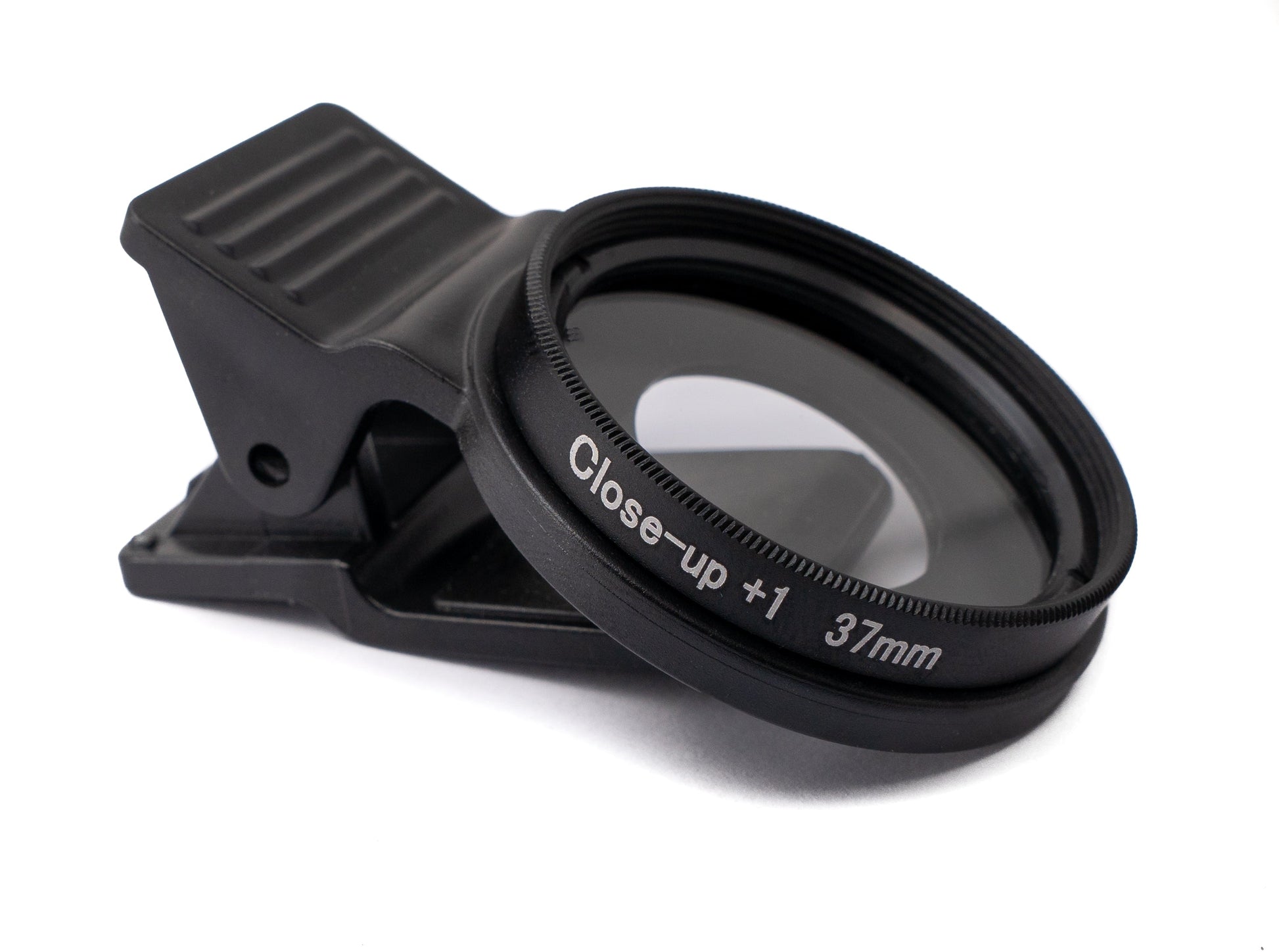 Klemma með skrúfanlegu +1-37mm macro linsu fyrir (snjallsíma) ljósmyndun