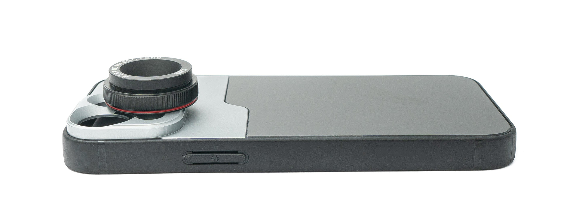 Hartschale mit anschraubbarer Makro-Linse für Fotografiearbeit