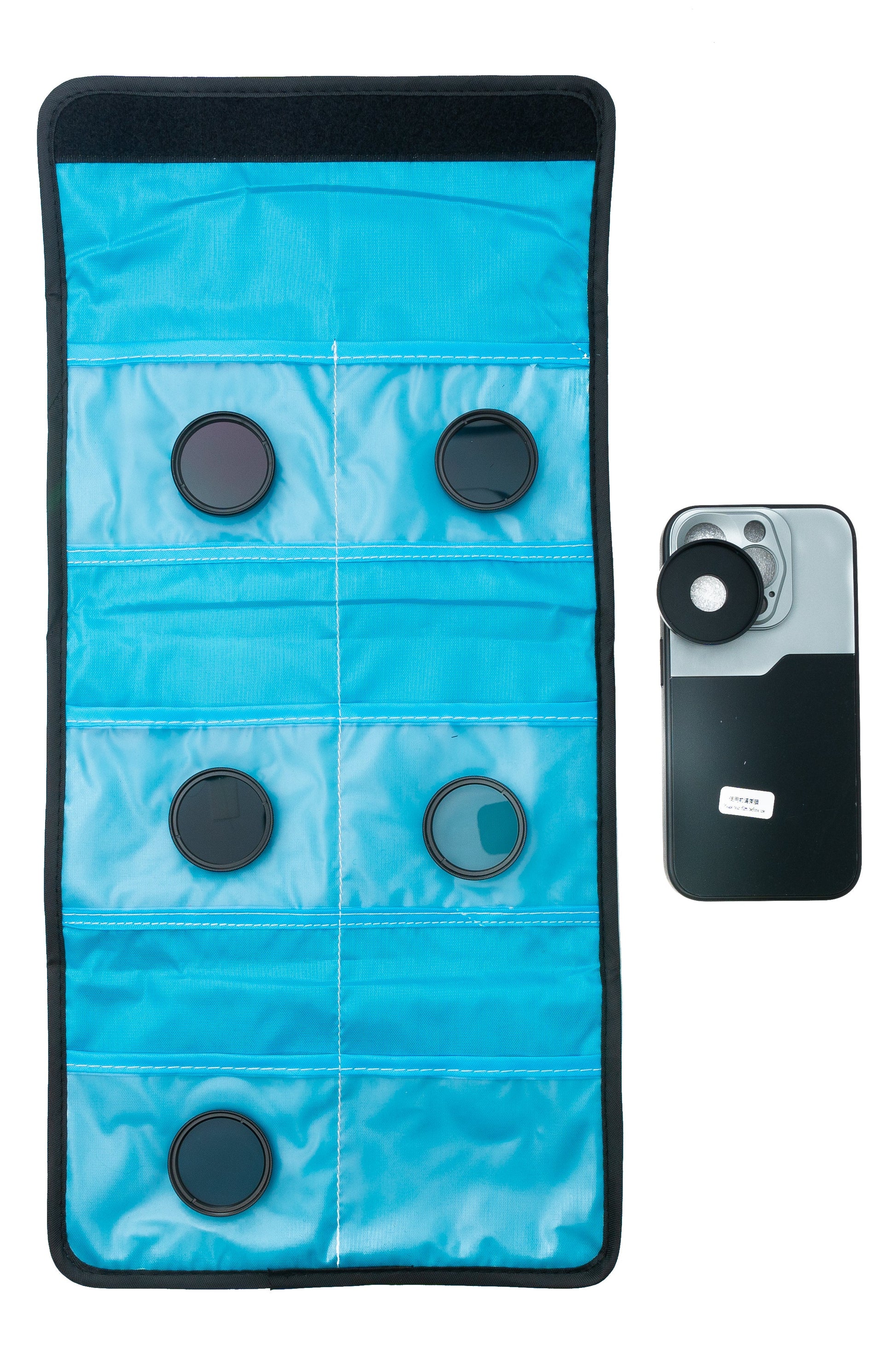 Inniheldur: Harðt taska með skrúfgangi, 5x skrúfanleg ND síur (ND2, ND4, ND8, ND16, ND32), geymslutaska - hentar eingöngu fyrir iPhone 15 Pro.