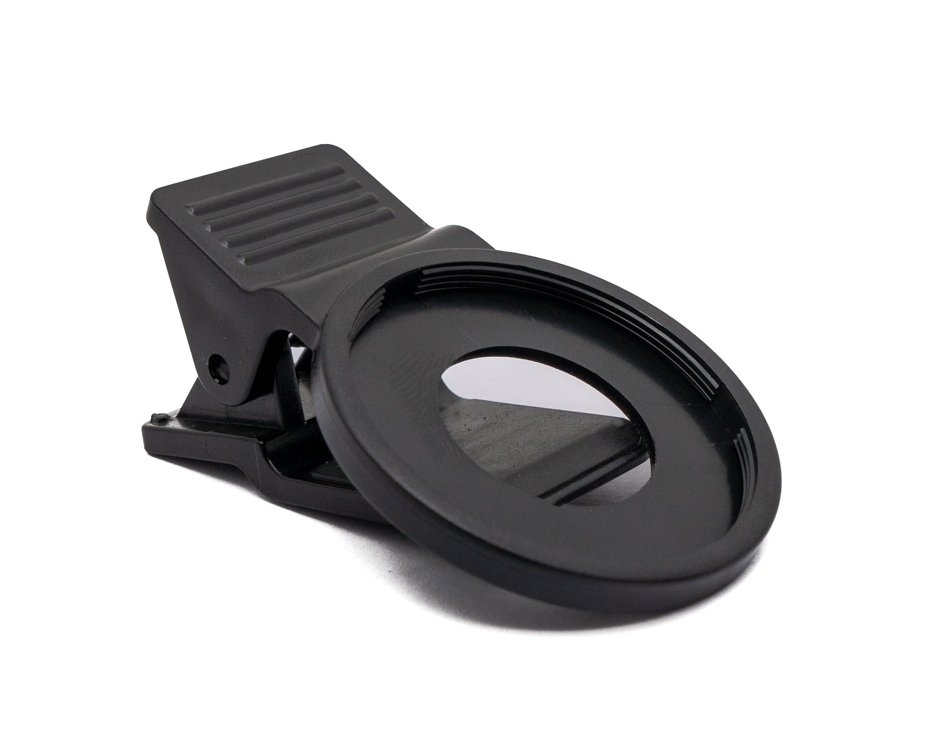 Festingarklemma: Sían er með klemmu sem gerir kleift að festa hana auðveldlega og örugglega við snjallsímann þinn. Þessi klemma er með skrúfanlegu ND-síu sem gerir kleift að stilla síuna fljótt og auðveldlega.