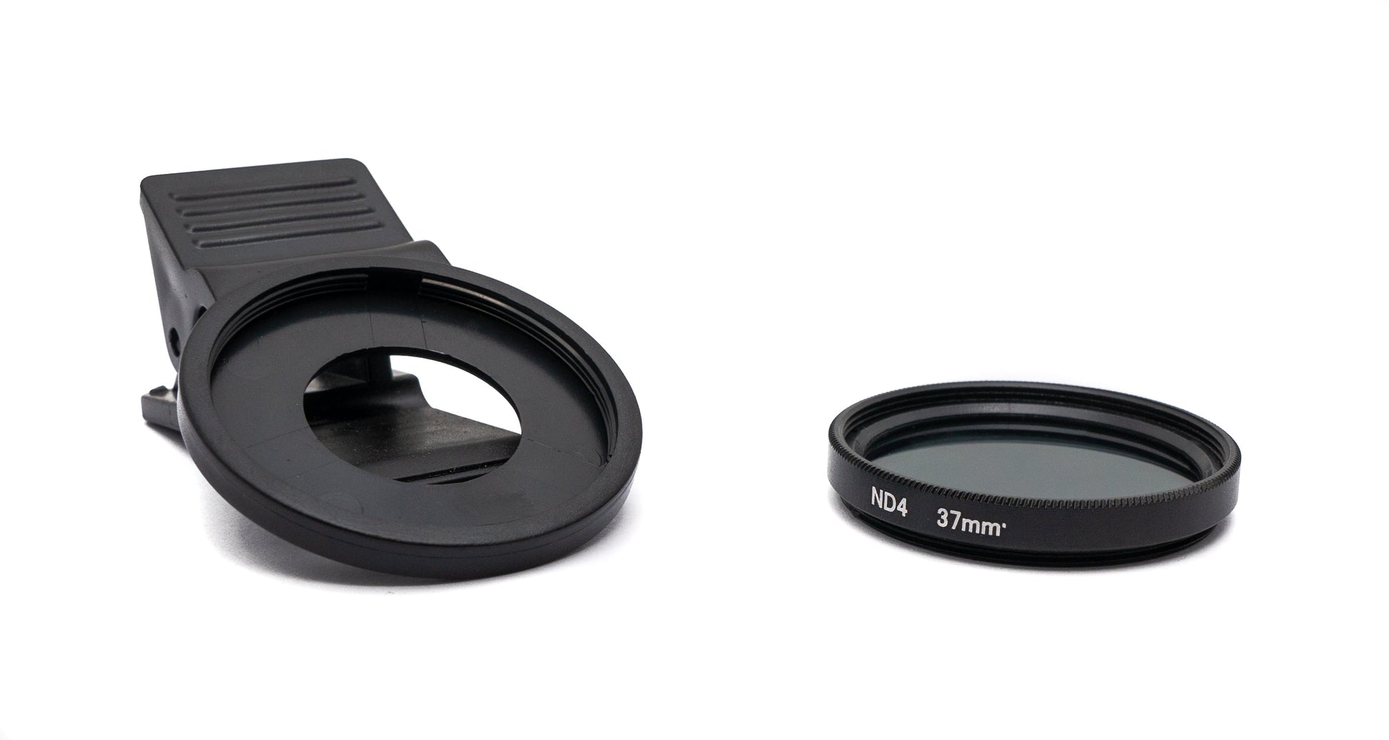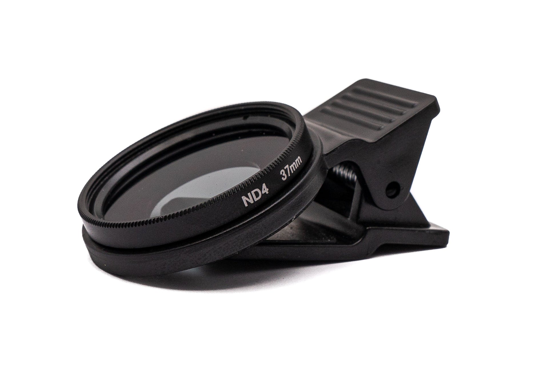 Klemma með skrúfanlegu ND4 síu fyrir (snjallsíma) ljósmyndun