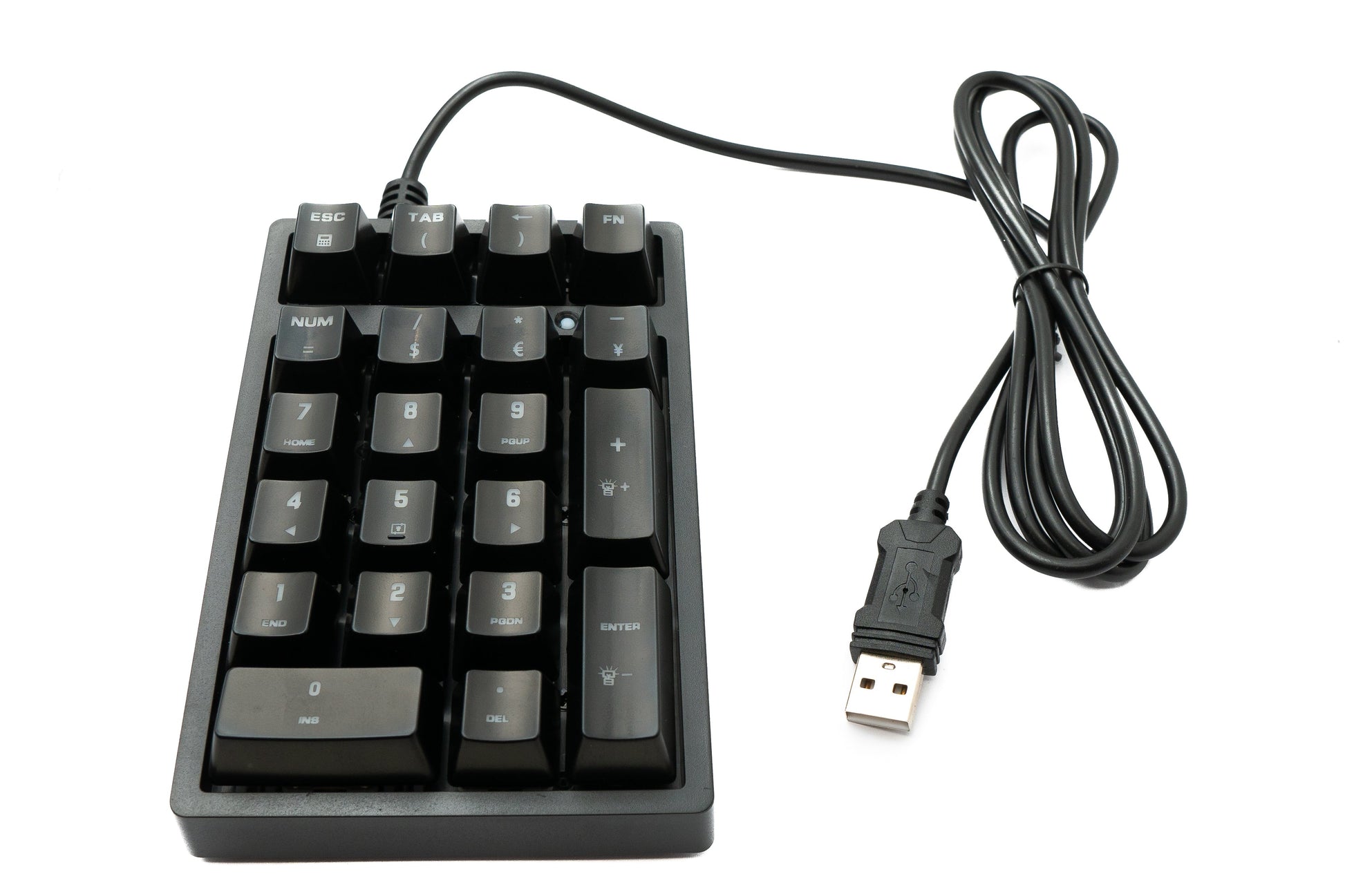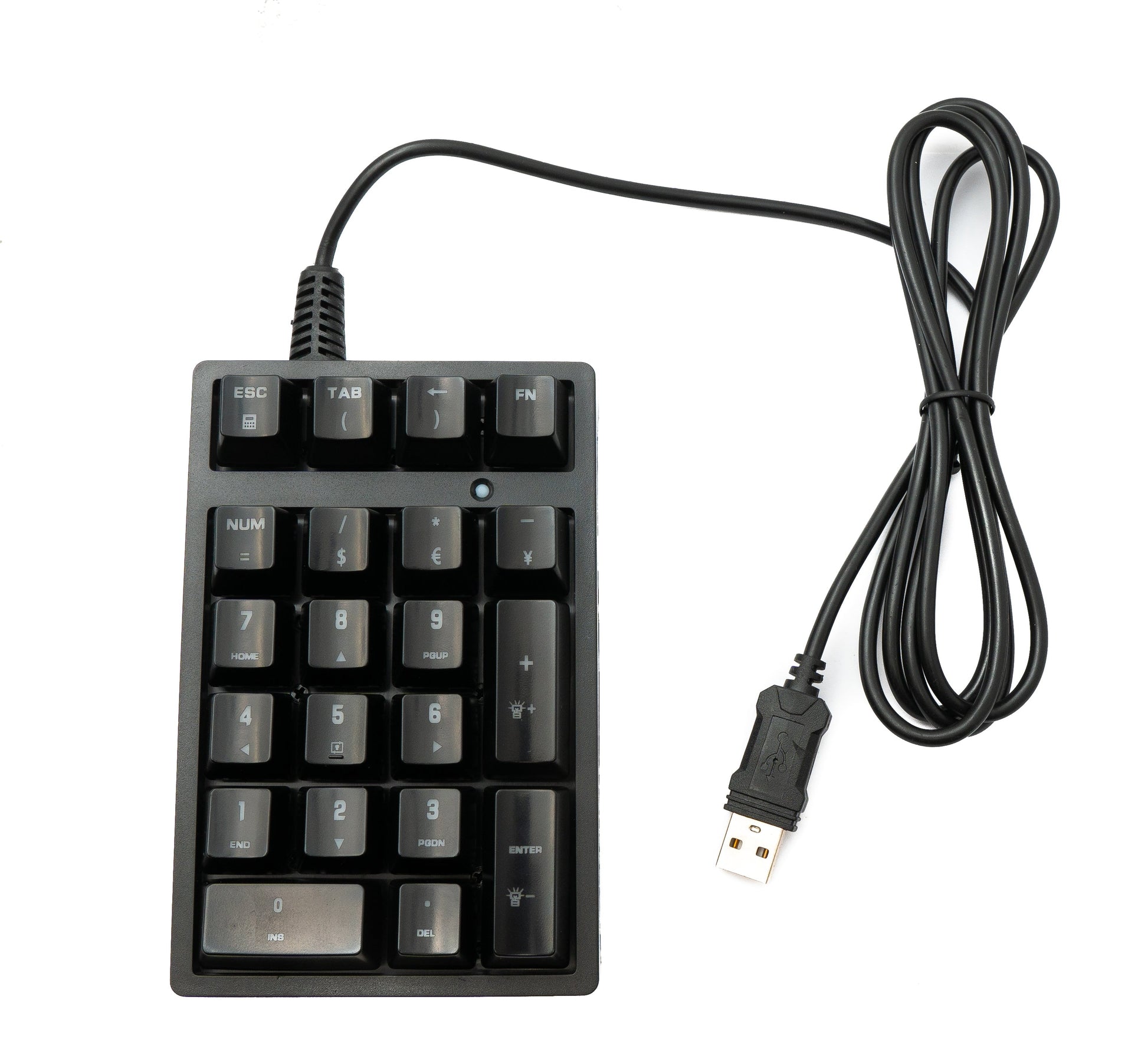 Inniheldur 21 takka: 17 venjulega takka og 4 aukalykla: "ESC", "Tab", Backspace og Function takkann ("FN").