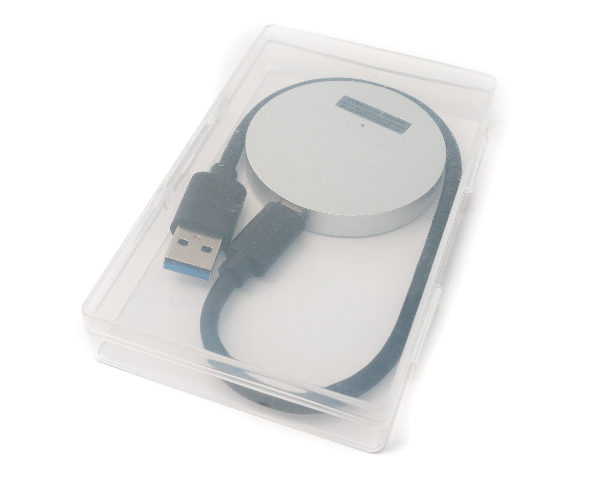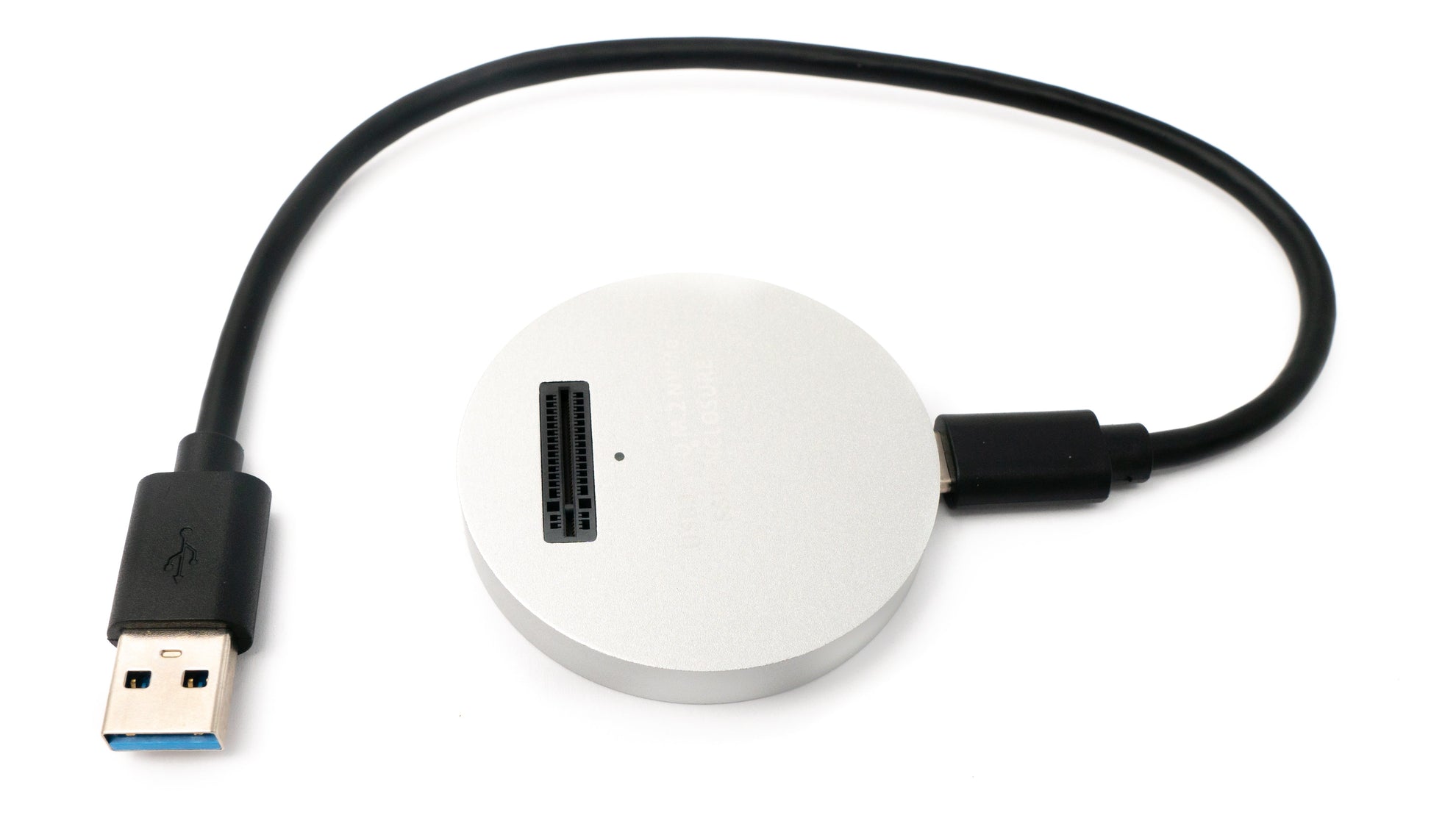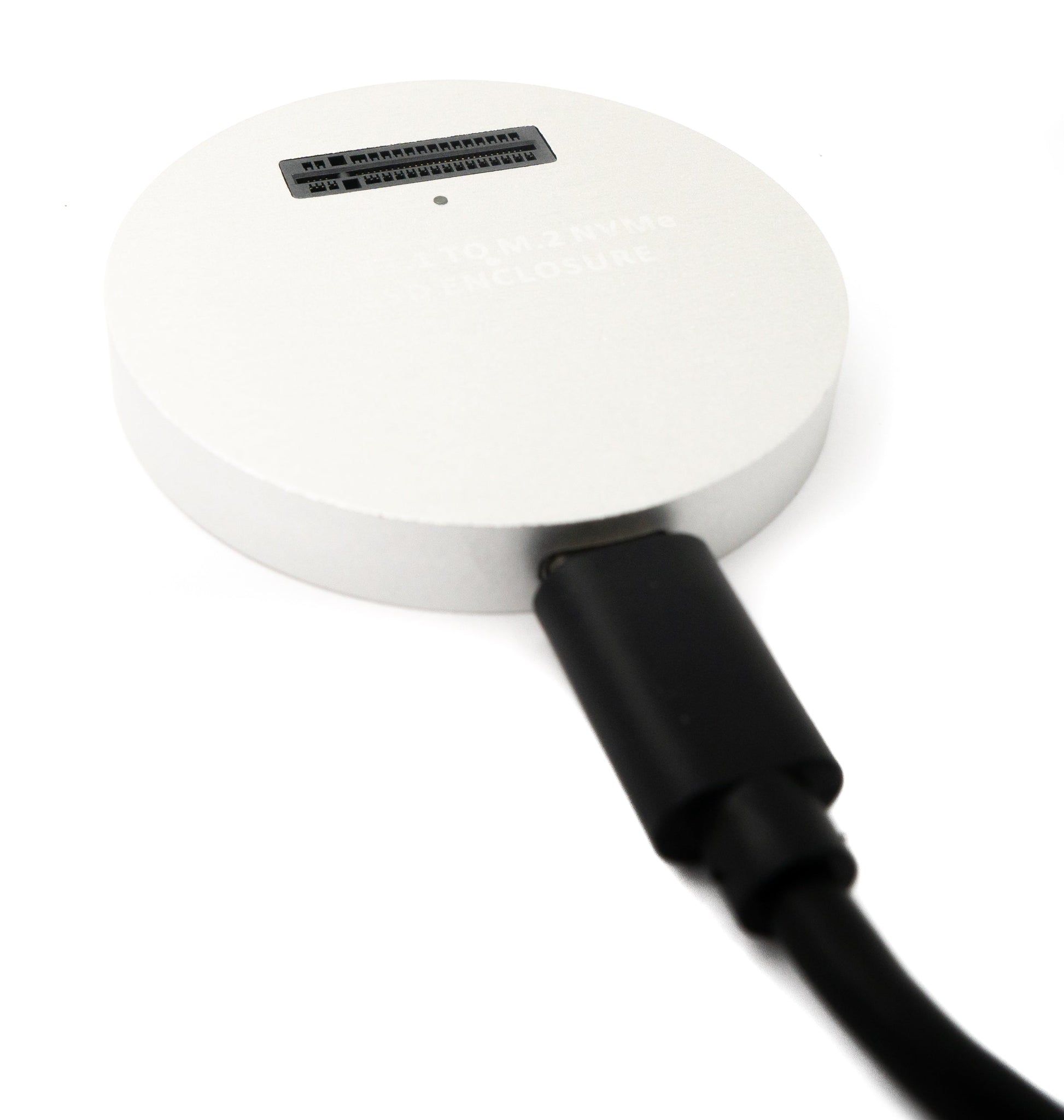 Stærð tengis: USB tengið mælist 3,9 x 1,7 x 1,7 cm (L x B x H), en NVME tengið mælist 5,5 x 1,0 cm (þvermál x H).