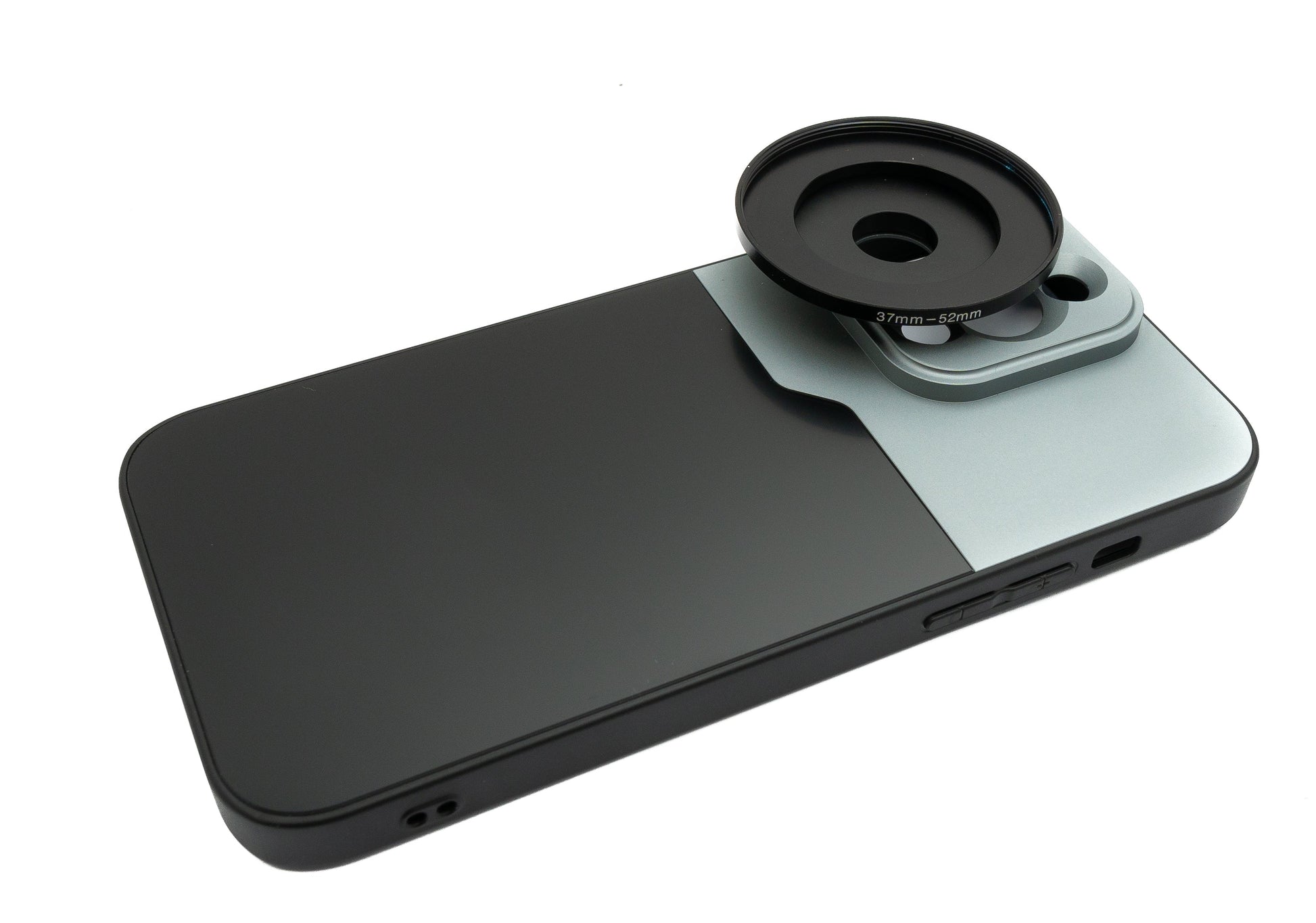 Hulstur með skrúfu til að skrúfa 52 mm áhrifalinsur á aðalmyndavélina eða ofurvíðlinsumyndavélina á iPhone fyrir ljósmyndavinnu (snjallsíma).