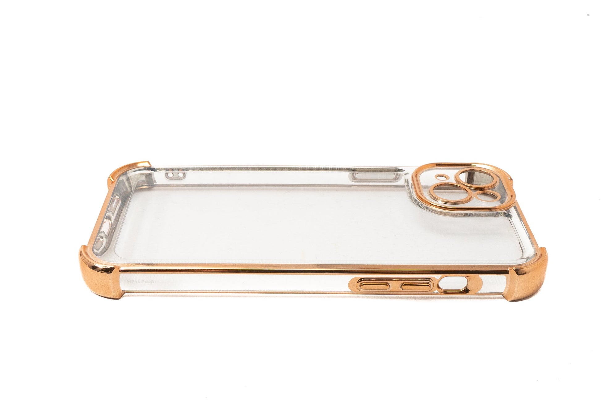 SYSTEM-S hlífðarhulstur úr höggdeyfandi TPU í glansandi gulu gegnsæju hulstri fyrir iPhone 14 Plus