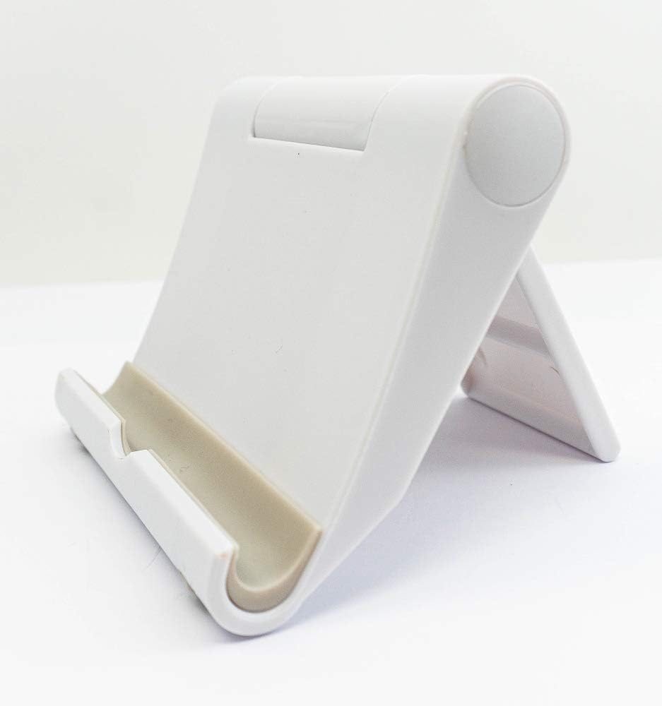 SYSTEM-S Standhaldari samanbrjótanlegur og stillanlegur í hvítu fyrir spjaldtölvur og snjallsíma