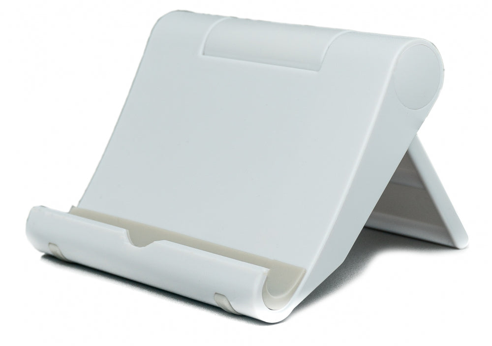 SYSTEM-S standhaldarinn í hvítu fyrir spjaldtölvur og snjallsíma býður upp á hagnýta virkni og fjölhæfa notkun: