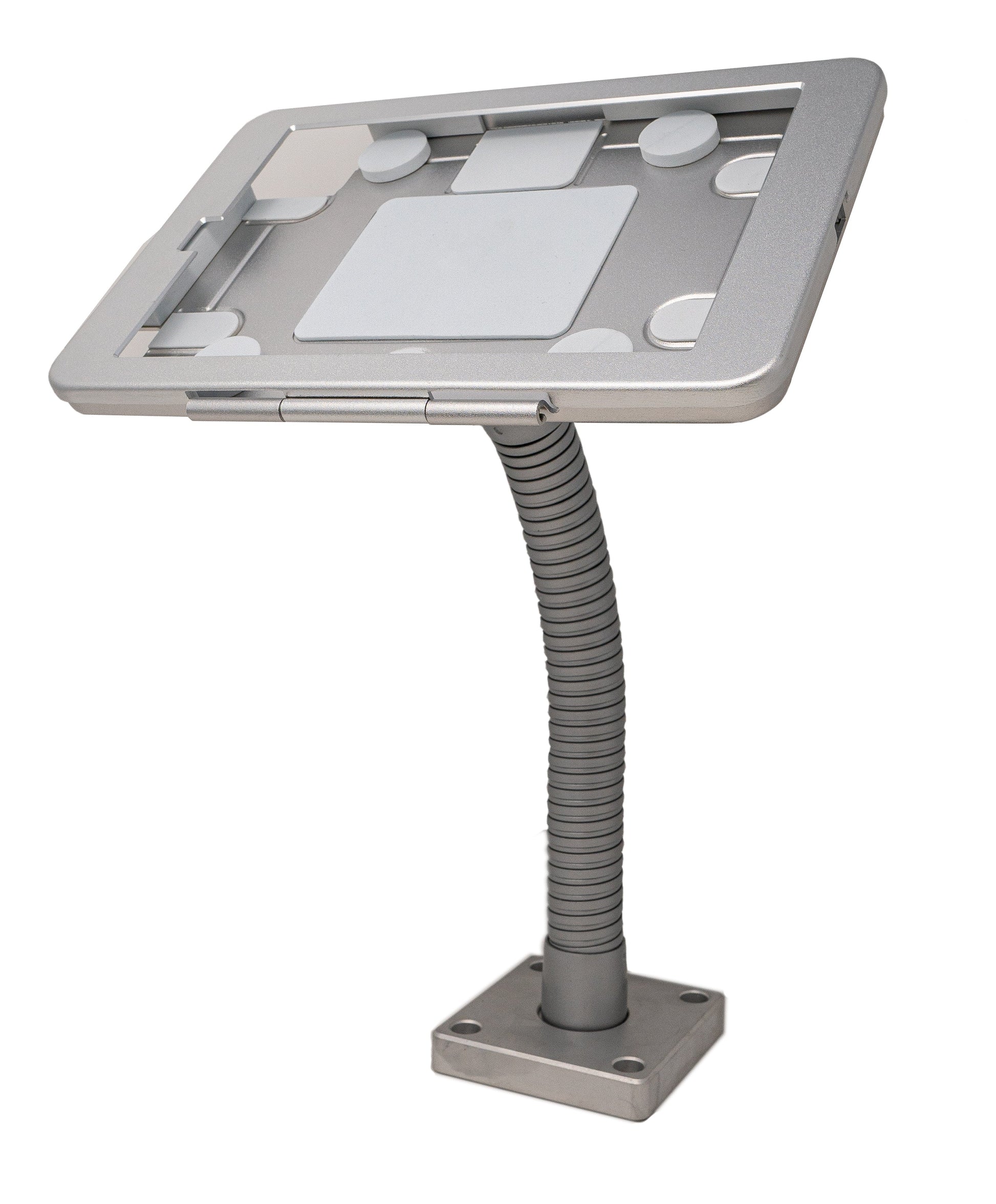 SYSTEM-S borðfestingarstandurinn með 360° festingu er hagnýt lausn til að festa og festa iPad Mini 6 (2021) á borðum og láréttum fleti. Hér eru helstu eiginleikar hans: