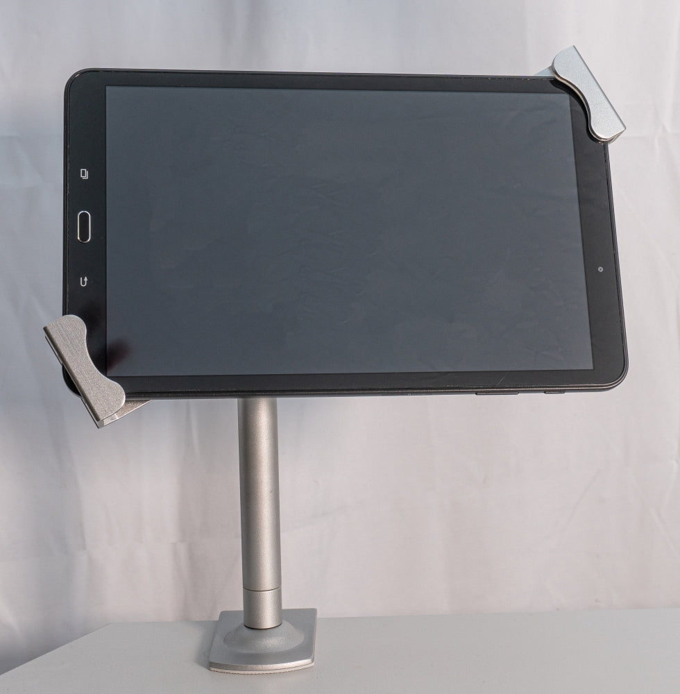SYSTEM-S borðfestingin býður upp á örugga og fjölhæfa leið til að festa spjaldtölvur með skjáþvermál frá 9" til 13" við borð eða önnur slétt yfirborð.
