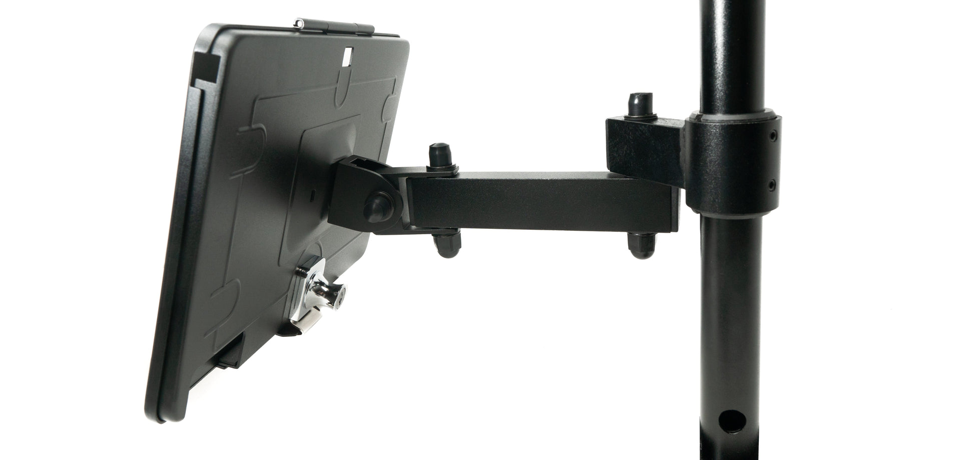 Þessi smart festing er hönnuð fyrir iPad 10.2" og sameinar skilvirkni og öryggi fyrir sýningar á viðskiptasýningum. Verndunarhulstrið snýst um 360° og hallahornið er stillanlegt. Innbyggður lás kemur í veg fyrir búðarþjófnað. Festingin er tilvalin fyrir viðskiptasýningar, sýningar, verslanir og margt fleira.