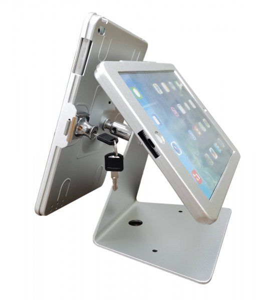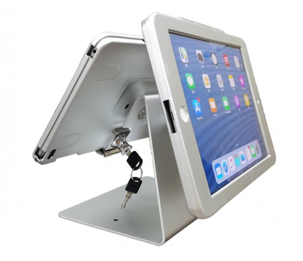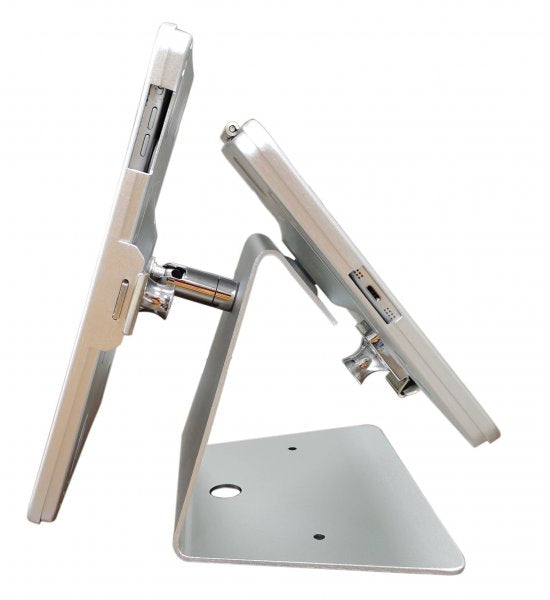 Þessi smart spjaldtölvufesting sameinar skilvirkni og öryggi fyrir sýningar á viðskiptasýningum. Hægt er að stilla hallahornið um það bil 60° og snúa festingunum 360°. Innbyggðir læsingar koma í veg fyrir búðarþjófnað. Festingin er tilvalin fyrir viðskiptasýningar, sýningar, verslunarrými og margt fleira.