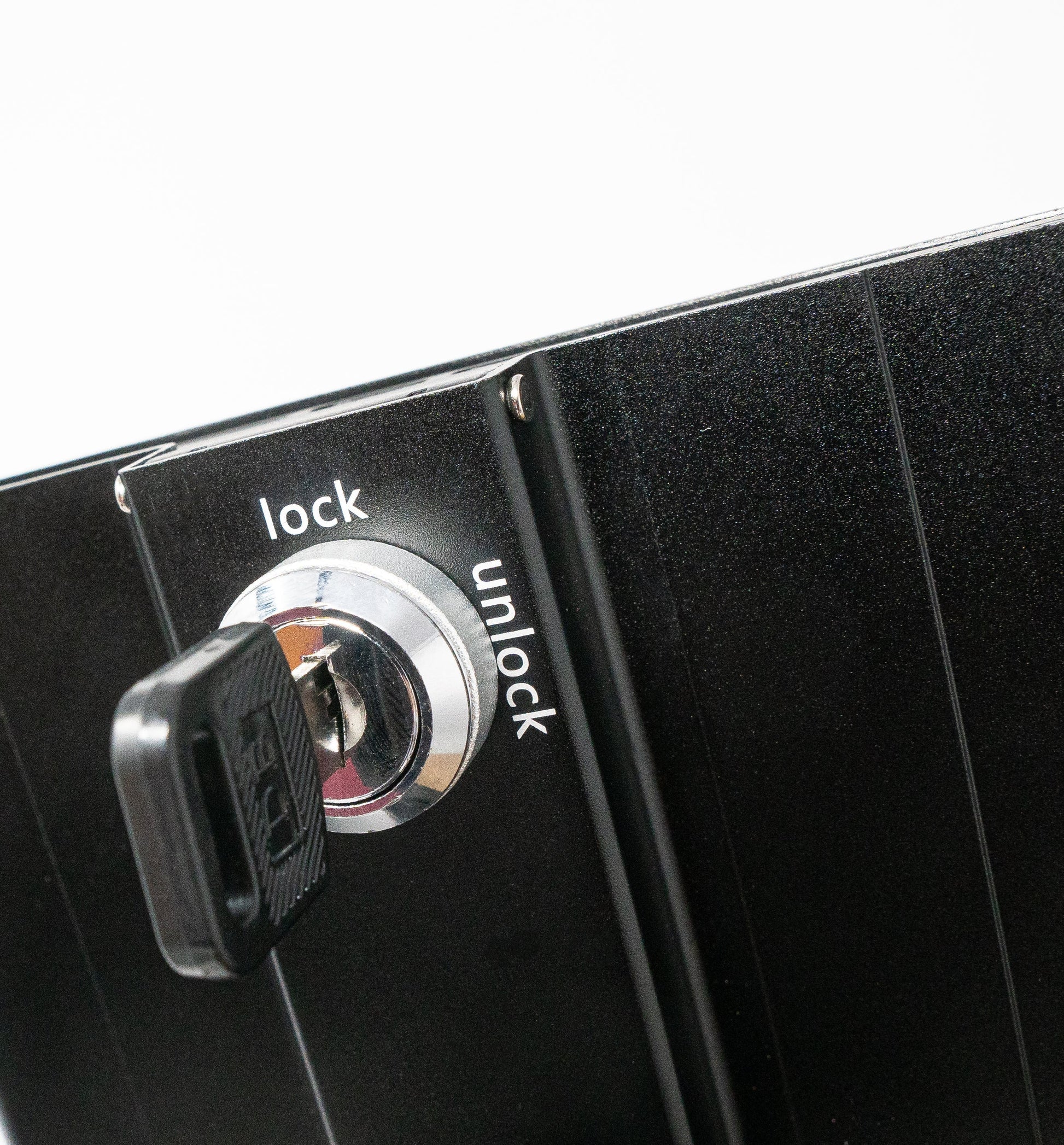 - Innbyggður læsing kemur í veg fyrir þjófnað, tilvalið fyrir viðskiptamessur, sýningar og verslanir.