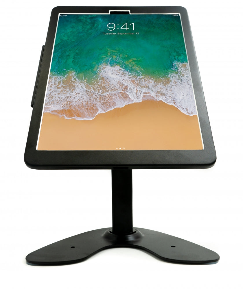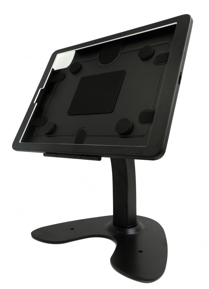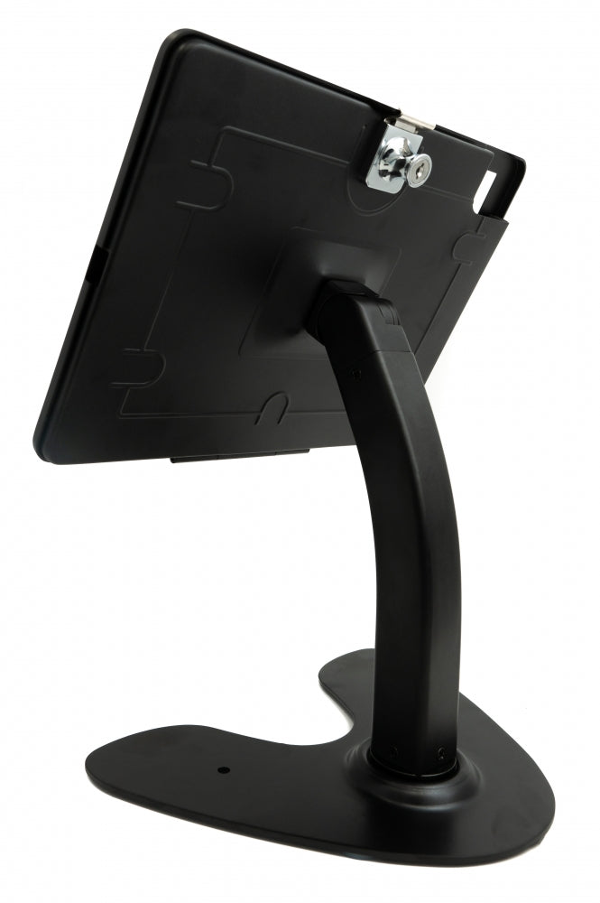 SYSTEM-S borðstandurinn er læsanlegur og þjófavarnandi standur sem er sérstaklega hannaður fyrir iPad Pro 12,9 tommu (2021, 2020, 2018). Með sveigðum stuðningsarmi býður hann upp á kjörlausn fyrir viðskiptasýningar, sýningar og kynningar í verslunum, eða sem matseðilshaldari. Festingin snýst um 360° og gerir kleift að stilla hallahornið fyrir bestu mögulegu skoðun. Innbyggður læsing verndar gegn þjófnaði og veitir öryggi fyrir iPad Pro þinn.