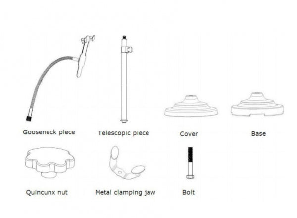 Universales Stativ/Ständer/Halterung für sämtliche Arten von Tablet PC’s. Diese Halterung eignet sich für alle Arten von privaten und beruflichen Aktivitäten. Der Schwanenhals-Haltearm lässt sich beliebig in alle Richtungen verstellen und ausrichten. Der Fuss ca. Ø 26 cm (ca. 4,4 Kg) sorgt für einen sicheren Halt.