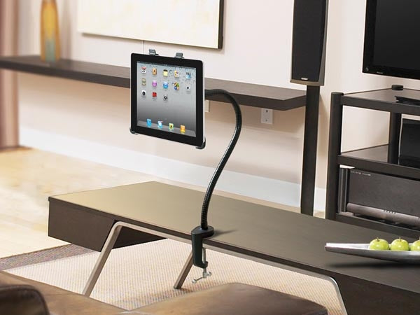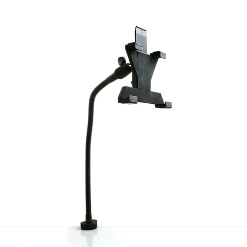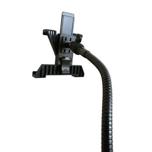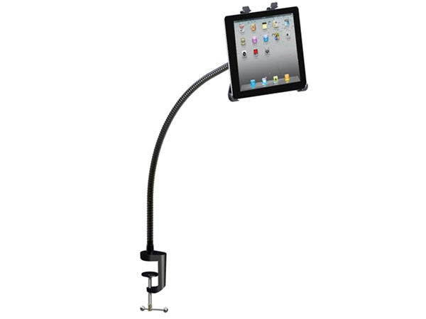 Með þessari handhægu festingu hefurðu spjaldtölvuna beint fyrir framan þig án þess að þurfa að halda á henni. Hægt er að hreyfa svanahálsarminn í allar áttir og skrúfuklemman fyrir borðplötuna er eins og steinn.