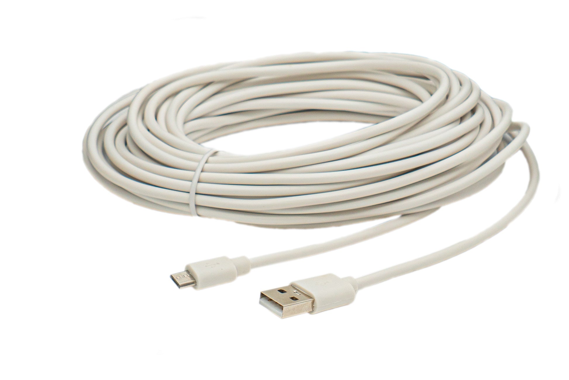 SYSTEM-S USB 2.0 snúra 10 m Micro B tengi í Type A tengi í hvítu