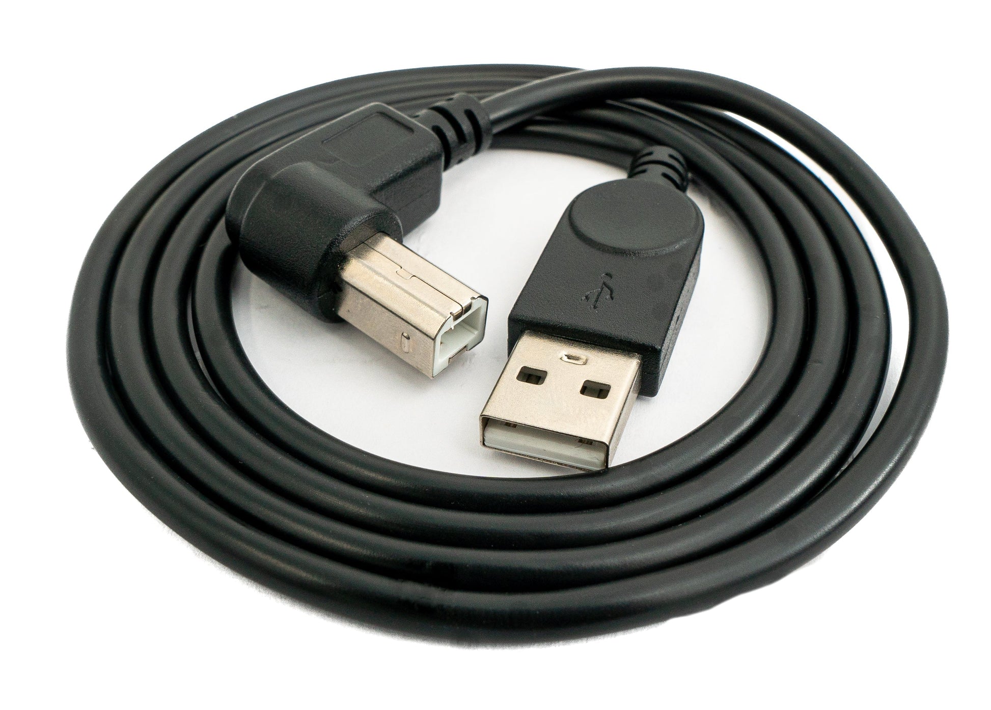 SYSTEM-S USB 2.0 snúra 100 cm af gerðinni B karlkyns í A karlkyns, vinklaður í svörtu