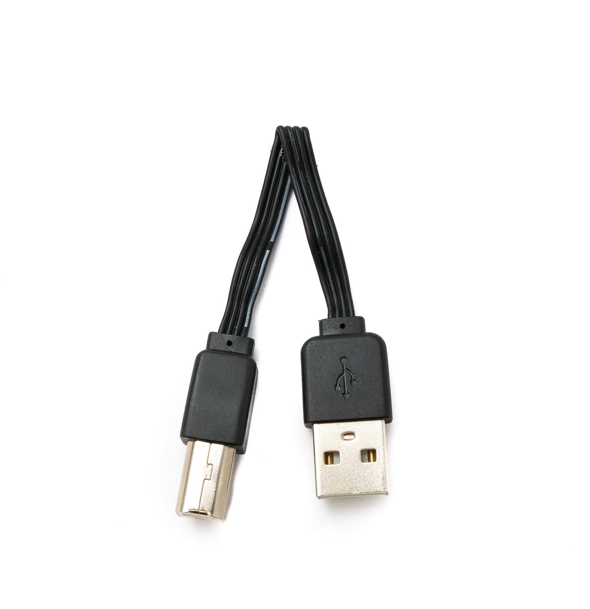 SYSTEM-S USB 2.0 snúra 13 cm karlkyns B í karlkyns A stutt flatt tengi í svörtu