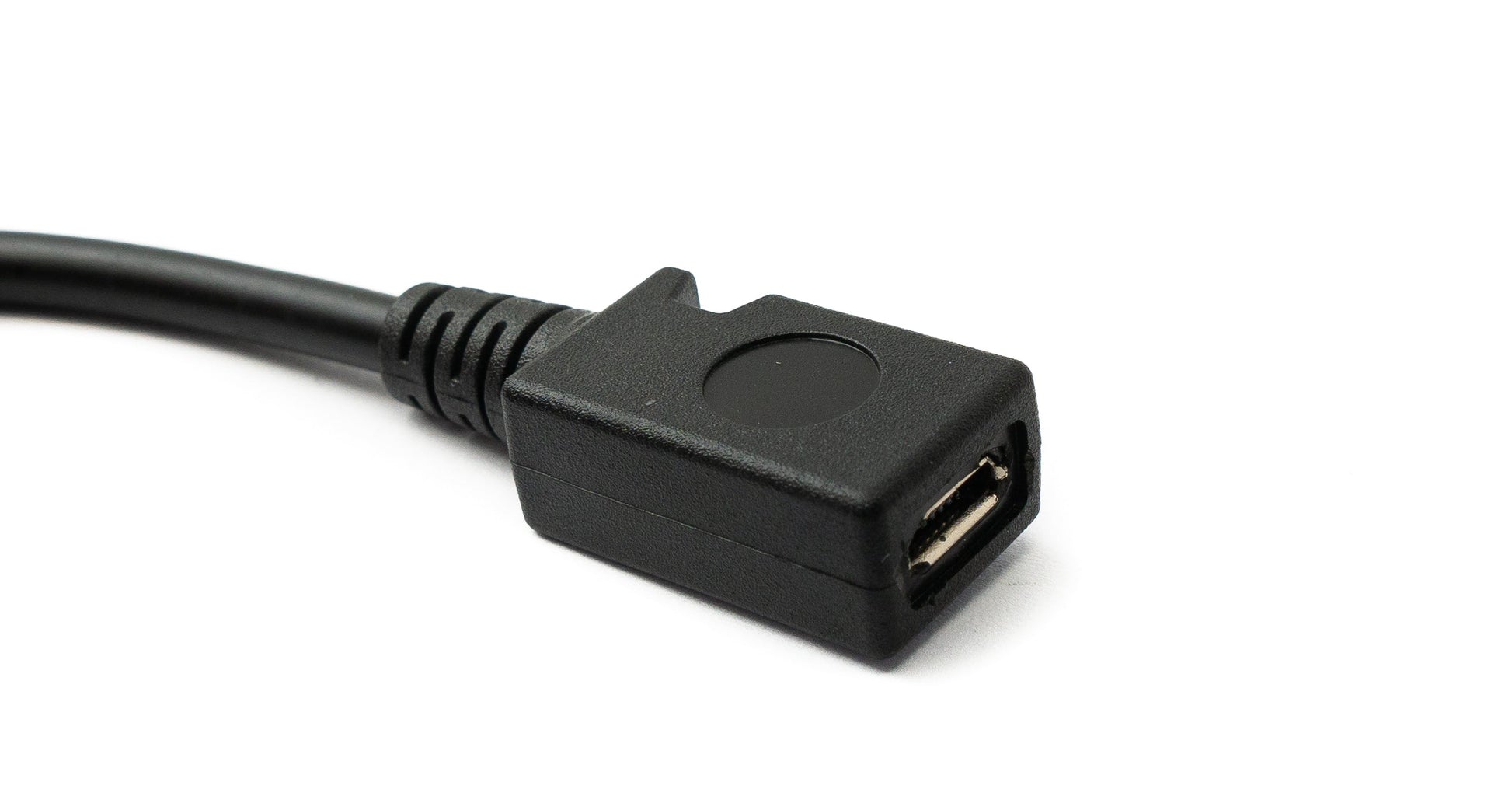 SYSTEM-S USB 2.0 snúran er hagnýtur millistykki sem tengir saman tvö Micro B tengi. Tilvalinn til notkunar í þröngum umhverfum þar sem stuttur millistykki er nauðsynlegur.